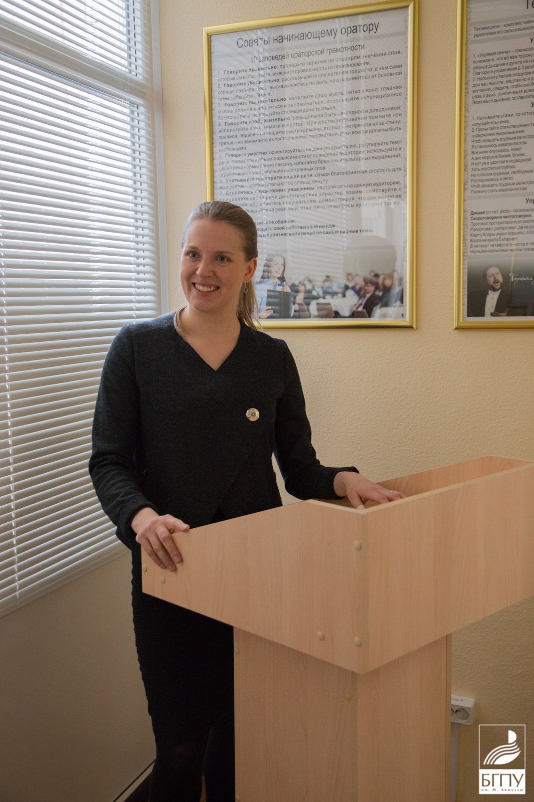 В рамках визита в Башгоспедуниверситет госпожа И. Леппянен посетила Центр по продвижению русского языка в странах ШОС, ознакомилась с деятельностью Центра развития компетенций «Славянский мир», прочитала «Золотую лекцию» для студентов на тему «Международная политика и международные отношения между Россией и Финляндией», а также рассказала о возможностях обучения в университетах Финляндии.