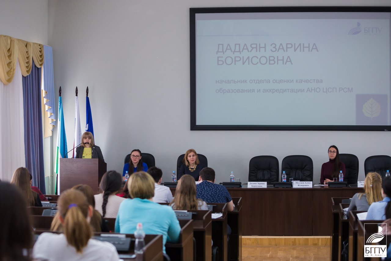 Гостями семинара стали Мустаев Алмаз Флюрович, проректор по учебной работе БГПУ им. М. Акмуллы, Валеева Диана Мансуровна, председатель региональной организации Российского союза молодежи Республики Башкортостан и Дадаян Зарина Борисовна, начальник отдела оценки качества образования и аккредитации АНО ЦСП РСМ.