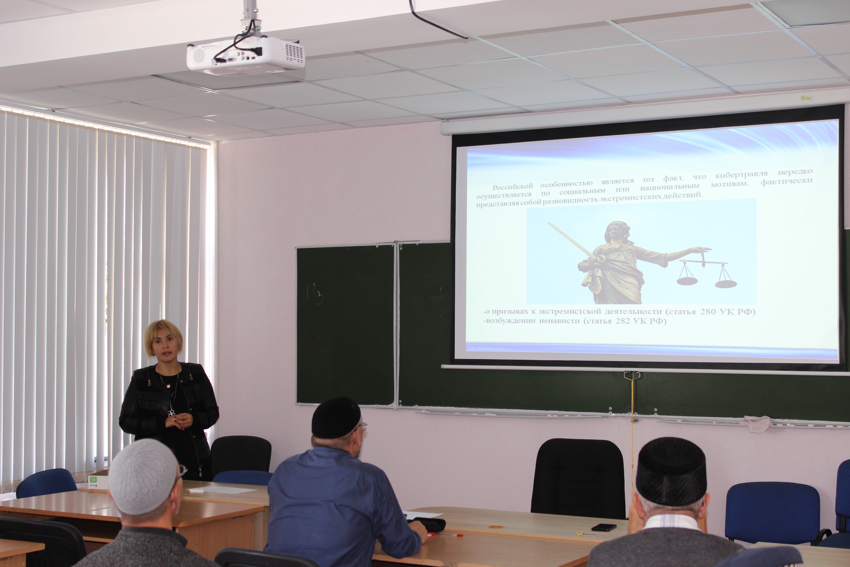 Слушателям были прочитаны лекции и проведены практические занятия по актуальным вопросам, в частности: "Исследование тематики религиозного экстремизма: методология и методы", "Законодательство РФ о свободе совести и  религиозных объединениях", "Педагогическим идеи формирования толерантности в мусульманских первоисточниках", "Формирование культуры безопасности в современной семье", "Психологические приёмы защиты от манипулирования сознанием", "Вербовочные стратегии НРД и террористических организаций", "Уголовно-правовые последствия совершения правонарушений экстремистской направленности" и другие.