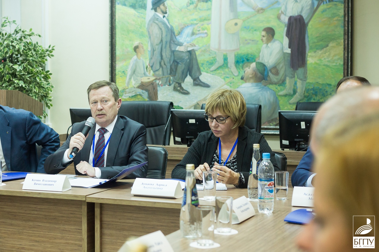 12 октября 2018 г. в БГПУ им. М. Акмуллы состоялся круглый стол «It-компетенции в профессиограмме педагога-русиста». Темы обсуждения: «Модели современного бимодального образования», «Формирование  IT-компетенций при подготовке учителей-филологов», «Электронные образовательные ресурсы в подготовке современного учителя-филолога». Модераторами выступили: Кочин Владимир Вячеславович – исполнительный директор фонда «Русский мир» и Дунаева Лариса Анатольевна – д-р педагогических наук, профессор кафедры русского языка для иностранных учащихся гуманитарных факультетов, зам. декана филол. ф-та по инновационной деятельности МГУ им. М. В. Ломоносова.