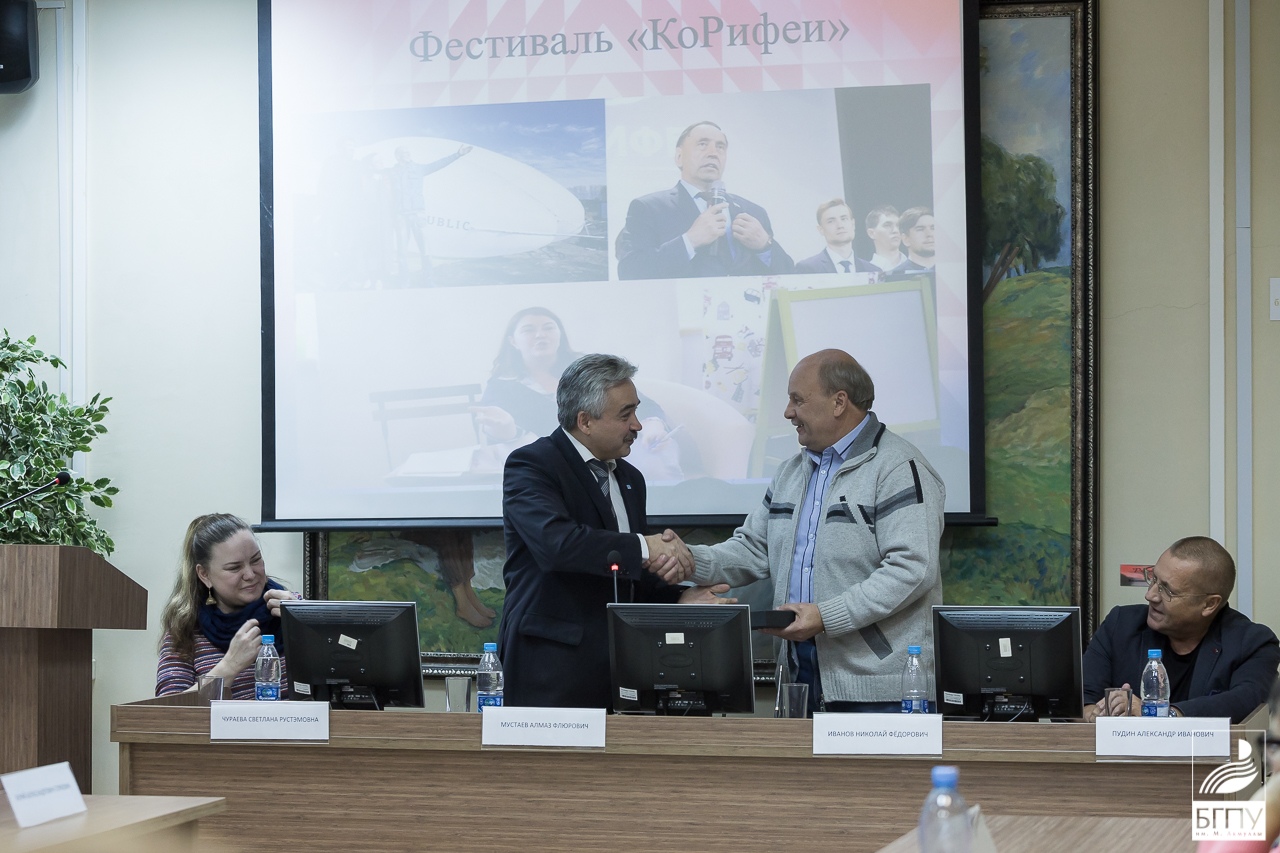 2 ноября 2018 г. в БГПУ им. М. Акмуллы в рамках Международного молодёжного литературного фестиваля «КоРифеи» состоялась пресс-конференция с Н. Ф. Ивановым – председателем Правления Союза писателей России, лауреатом ряда государственных наград и литературных премий, А. Н. Тимофеевым – прозаиком, литературным критиком, секретарём Союза писателей России, председателем Совета молодых литераторов Союза писателей России, З. Алибаевым – председателем Союза писателей РБ, С. Чураевой – писателем, поэтом, драматургом, публицистом,переводчиком, членом Союза писателей России и Башкортостана, председателем объединения русскоязычных писателей Союза писателей Республики Башкортостан. В пресс-конференции приняли участие руководство БГПУ им. М. Акмуллы: проректор по учебной работе БГПУ им. М. Акмуллы А. Ф. Мустаев, проректор по социальной и воспитательной работе В. А. Шаяхметов.