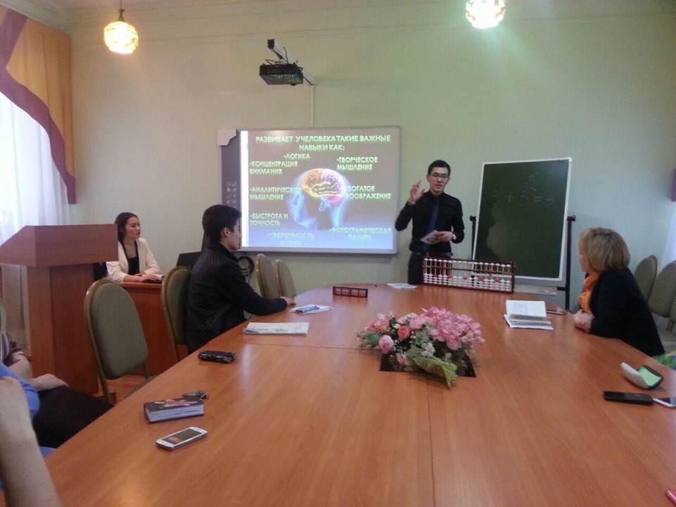 Нурымжан Жумагазиев, студент Актюбинского университета имени С. Баишева, проходивший обучение по программе академической мобильности в БГПУ им. М. Акмуллы, подробно объяснил собравшимся как с помощью абакуса можно быстро и правильно выполнять вычисления. Гости мероприятия были очень заинтересованы перспективной методикой образования, задавали вопросы и даже смогли попрактиваться на абакусе.