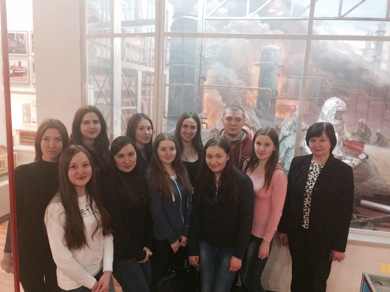 Будущих педагогов заинтересовали макеты школы с демонстрацией противопожарного оборудования, согласно установленным требованиям. Макеты многоэтажного дома, квартира «До и после пожара», образцы пожарной техники, пожар на нефтезаводе, вещи, оставшиеся после пожара, противопожарные костюмы, фотографии бригад пожарных частей в прошлом и настоящем, коллекции наград – все это вызвало неподдельный интерес студентов. Ребята особое внимание обратили на макет старой Уфы, где в 1759 г. от удара молнии загорелась Михайловская башня Уфимского Кремля. Сейчас там расположен Монумент Дружбы.