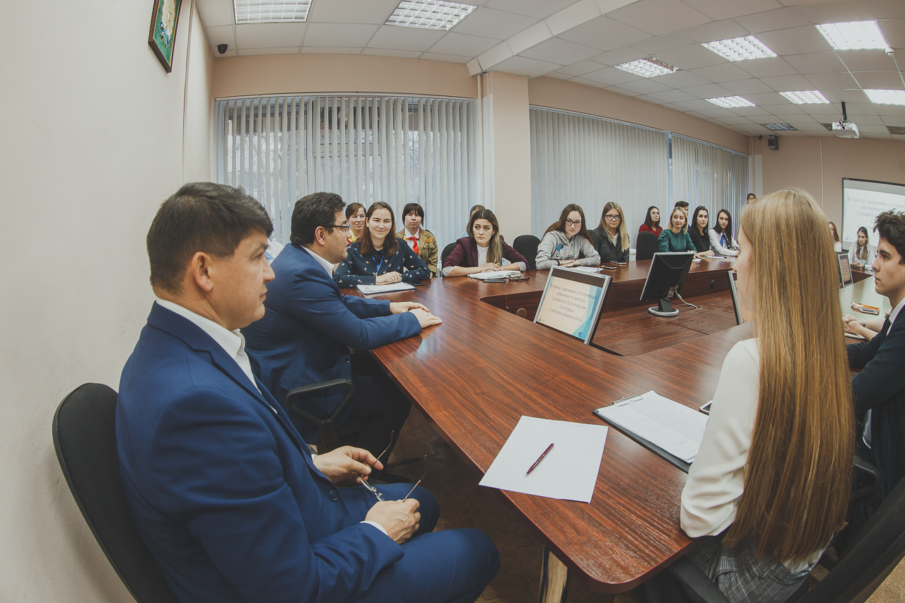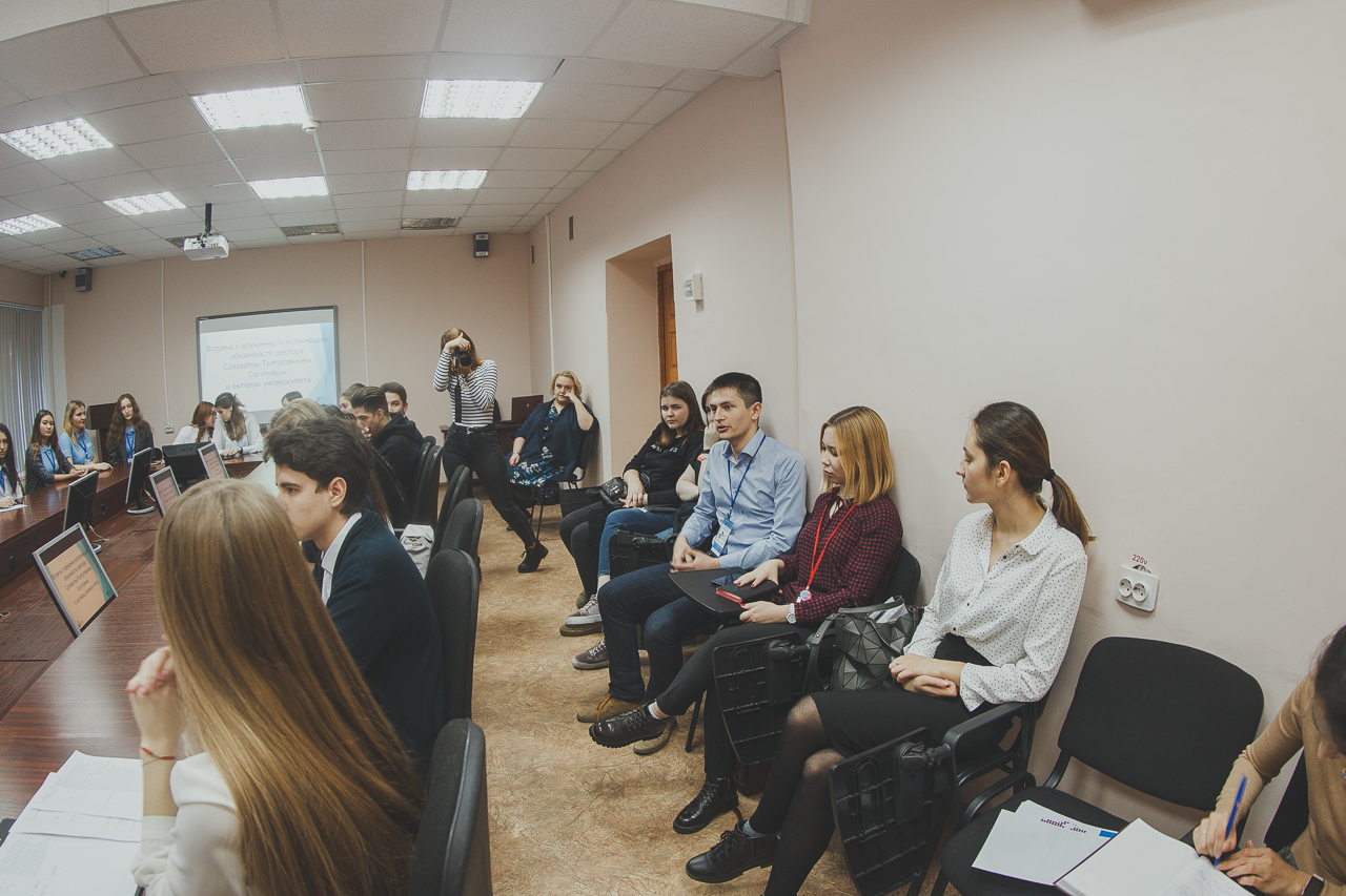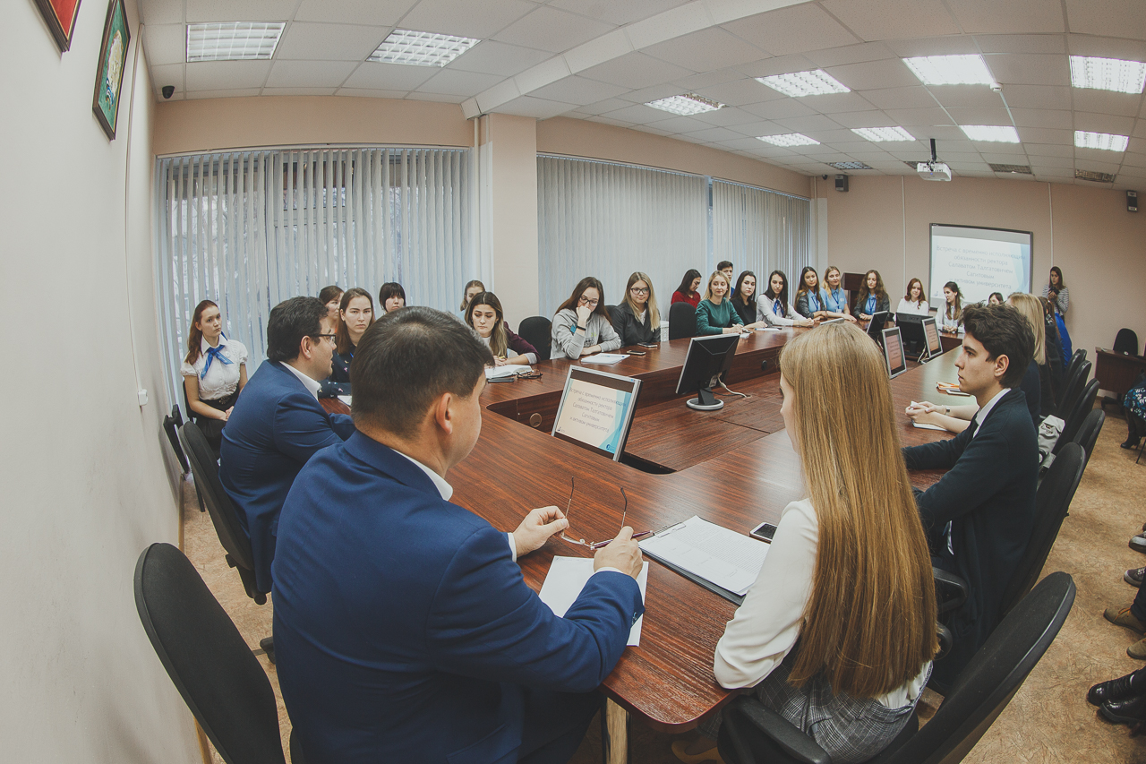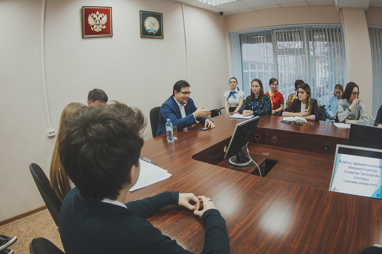 Салават Сагитов познакомился с представителями наиболее крупных студенческих объединений вуза, обсудил с ними вопросы совершенствования образовательного процесса в вузе, оборудование аудиторий, внедрение в учебный процесс проектного подхода и иных новейших форм обучения. Также обсуждались меры безопасности и доступной среды общежитий и учебных корпусов вуза.