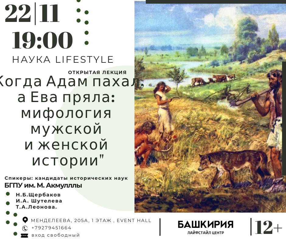 22 ноября состоится открытая лекция на тему: "Когда Адам пахал, а Ева пряла: мифология мужской и женской истории" в рамках проекта "Наука LIFESTYLE" (10+).