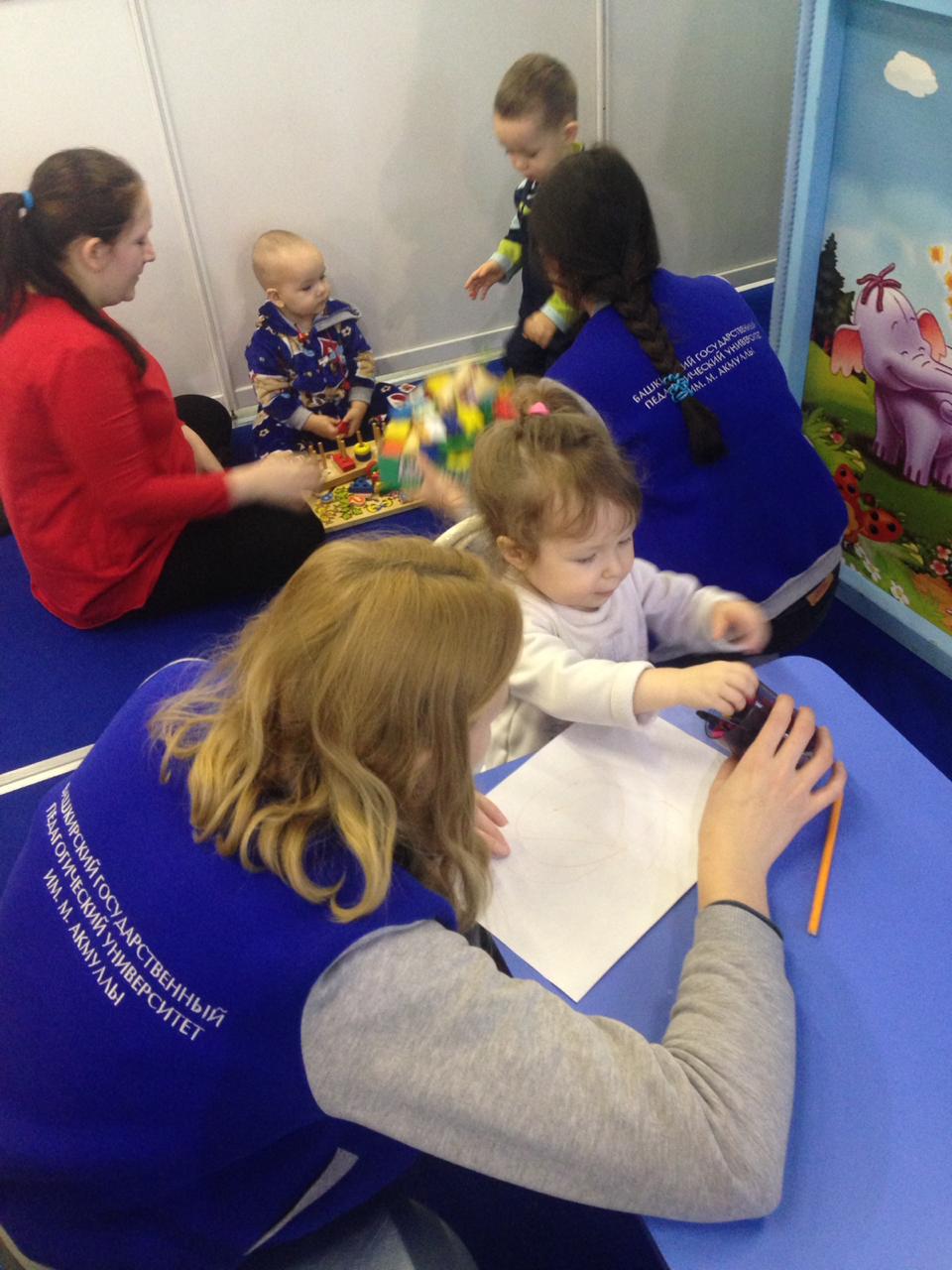 22 ноября 2018 года в рамках выставки-форума «Мир семьи. Материнство и детство», которая с 21 по 24 ноября проходит в городе Уфе в Конгресс-зале ВДНХ-ЭКСПО студентами 3 и 4 курса социально-гуманитарного факультета, ОДО, направления подготовки «Психология и социальная педагогика», направленности (профиля) «Психология и социальная педагогика» была организована воспитательно-развивающая работа на одной из площадок выставки. Будущие социальные педагоги подготовили разнообразные игры, задания, упражнения для дошкольников и младших школьников с учетом возрастных и индивидуальных особенностей развития личности, познавательных интересов детей данного возраста. Дети были очень активными, с радостью и легкостью выполняли все задания и упражнения. Студенты-практиканты развили свои общепрофессиональные, профессиональные и специальные компетенций в области социально-педагогической деятельности.