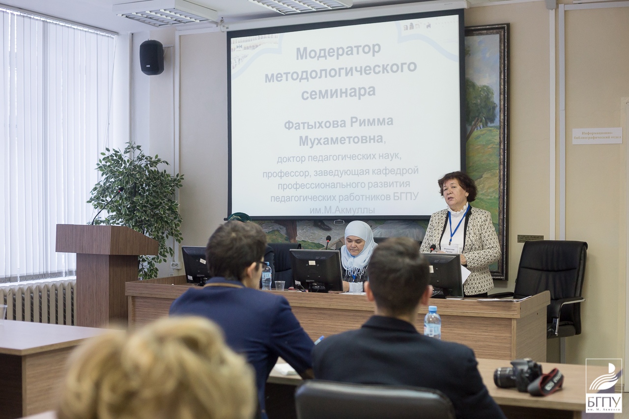 Модератор методологического семинара заведующая кафедрой профессионального развития работников образования БГПУ им М.Акмуллы – профессор Р.М. Фатыхова представила докладчиков и ознакомила участников с программой работы семинара.