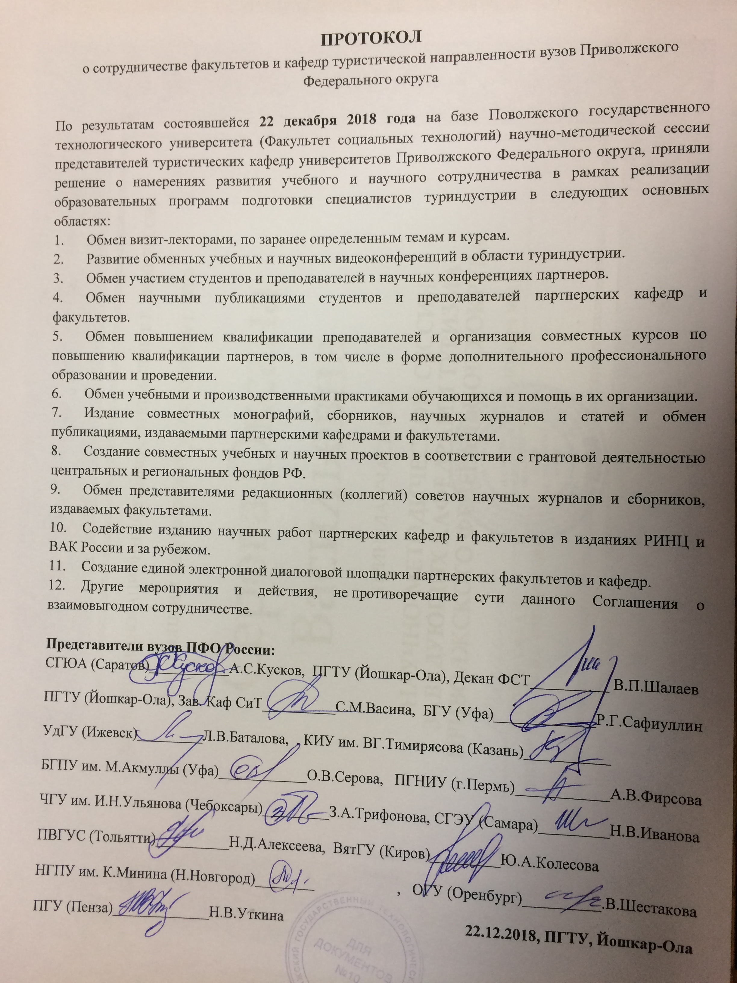 21-22 декабря 2018 г. состоялось знаковое событие – на базе Казанского инновационного университета им. В.Г. Тимирясова (г. Казань) и в Поволжском государственного технологического  университета (г. Йошкор Ола) была проведена научно-методическая сессия заведующих туристскими кафедрами высших учебных заведений Приволжского федерального округа.
