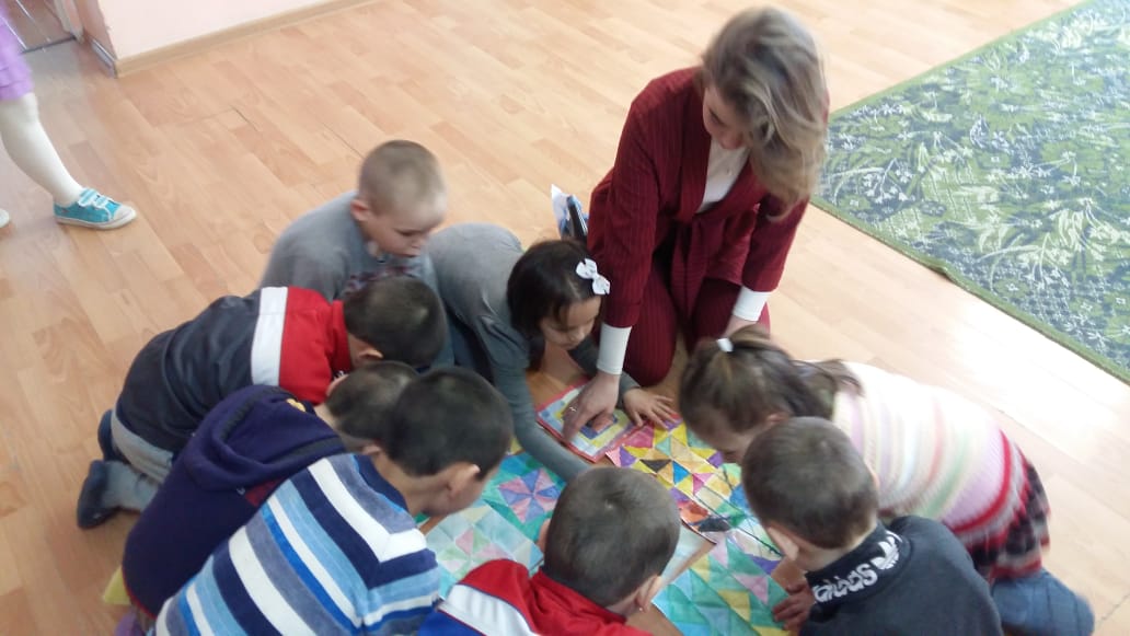 Валиева, Аделя Халитова, Динария Адиатуллина,  студенты 1 курса направления «Дошкольное образование» Карина Иванова и Наиля Сабирьянова, студентка 3 курса направления «Начальное образование» Диана Акбутина, студентка 1 курса «Начальное образование» Мария Матвеева и студент УГАТУ Дмитрий Соколов, под рук. к.п.н., доцента кафедры теорий и методик начального образования, руководителя волонтерского отряда «Палитра» ИП Е.А.Савельевой, провели занятие «Лоскутная мозаика: традиции мастерства» для воспитанников приюта Занятие вела Екатерина Савельева. Дети познакомились с неразрывными связями художественного ремесла с бытом народа, полюбовались произведениями мастериц-рукодельниц, украшенные традиционными элементами орнамента и имеющие названия «Мельница», «Ёлочки», «Пила», «Колодец». Воспитанники узнали о том, что выполненные мастерицами изделия – одеяло, панно, коврики из пестрых лоскутков ткани - вносили радость в дом, украшая жилище и быт. После рассказа дети, под руководством волонтеров выполнили модель лоскутного одеяла из бумаги.