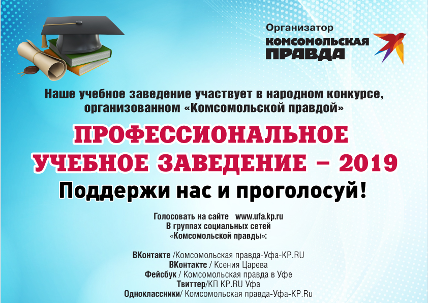 На сайте www.ufa.kp.ru стартовал конкурс-голосование «Профессиональное учебное заведение - 2019».