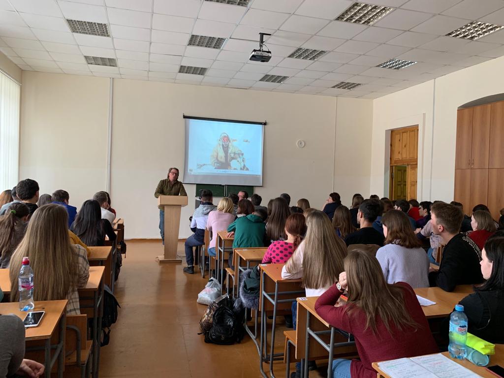 На ЕГФ состоялась встреча с российским путешественником, фотографом, этнографом, режиссером-документалистом, членом Русского географического общества Леонидом Кругловым. Он - руководитель проекта "Семеро смелых", результатом которого является цикл фильмов "По следам великих русских путешественников".