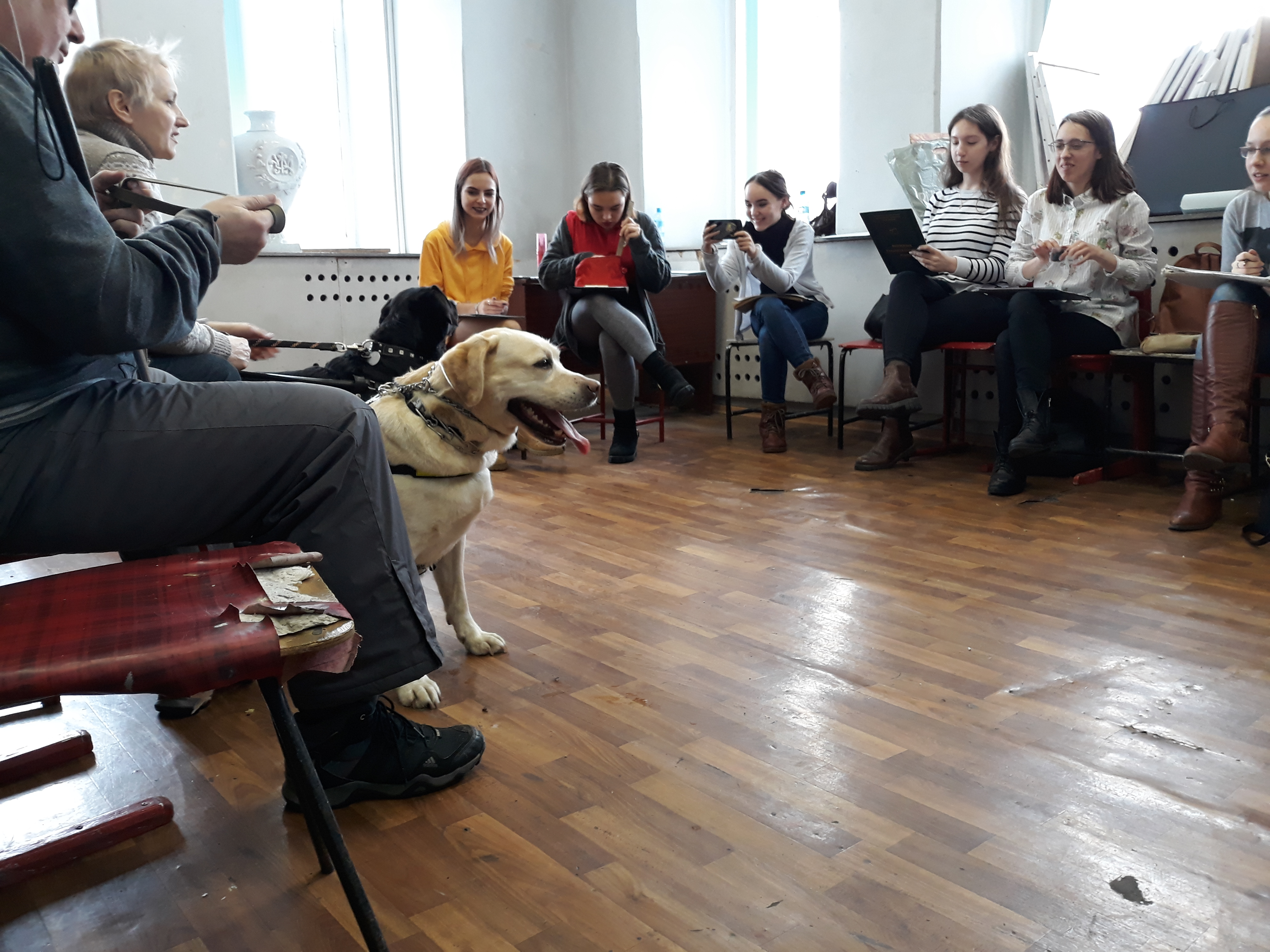 14 марта на художественно-графическом факультете прошла встреча студентов с представителями «Актырнак» — клуба владельцев собак-проводников Республики Башкортостан. Целью клуба является гармоничное развитие людей с инвалидностью по зрению первой и второй группы в возрасте от 18 лет и старше, проживающих на территории Республики Башкортостан и дальнейшее совершенствование работы в сфере социальной реабилитации и адаптации незрячих.