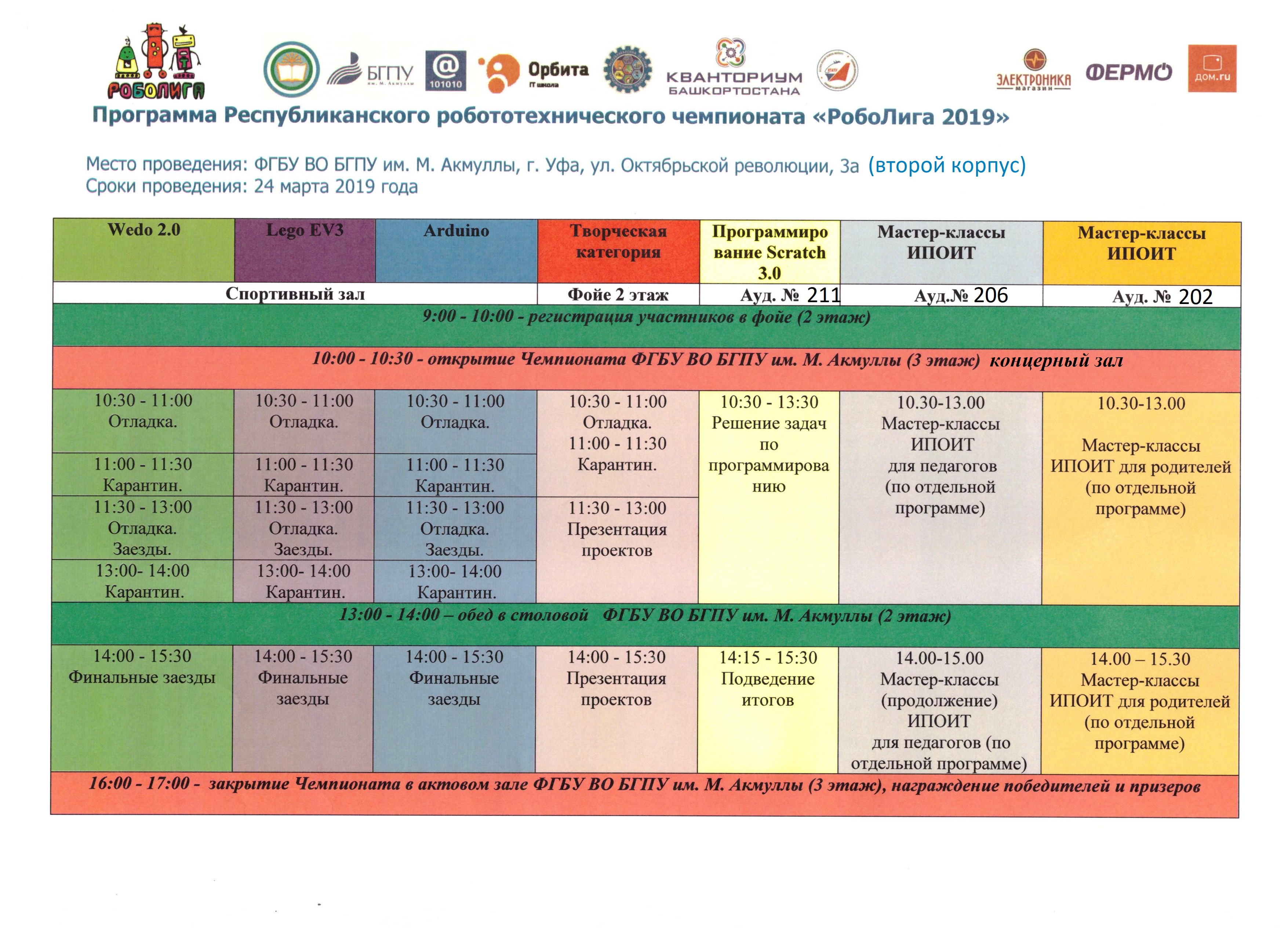 Приглашаем посетить  Республиканский этап роботехнического чемпионата "Roboliga Russia – 2019", которой  пройдет 24 марта 2019 г. в Башкирском государственном педагогическом университете им. М. Акмуллы по адресу г. Уфа, ул.Октябрьской революции, 3а, второй учебный корпус. Организаторы: Министерством образования Республики Башкортостан, ФГБОУ ВО БГПУ им. М. Акмуллы, ГБУ ДО Республиканский детский образовательный технопарк, ООО IT-Школа «Орбита», ИПОиИТ БГПУ им.М.Акмуллы.