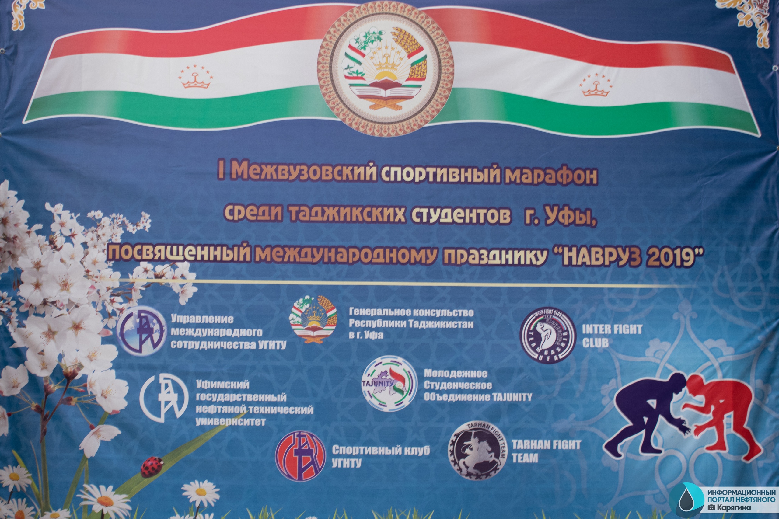 16 марта 2019 года в УГНТУ состоялись соревнования в рамках I Межвузовского спортивного марафона среди граждан Таджикистана, обучающихся в вузах Республики Башкортостан. С приветственным словом перед участниками соревнований выступил Генеральный Консул Республики Таджикистан в г. Уфе Саид Давлат. Соревнования были приурочены к празднованию приближающегося международного праздника «Навруз».