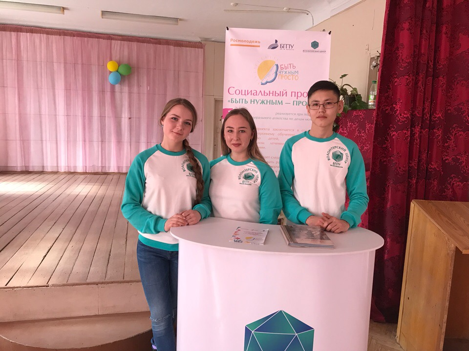 09 апреля координаторы Волонтерского центра БГПУ  им. М. Акмуллы Диана Халимова (факультет психологии), Асылбек Латипов (Институт профессионального образования и информационных технологий) и Дарья Гришина (художественно-графический факультет) провели "Урок добра" в МБОУ "Школа-интернат №3".