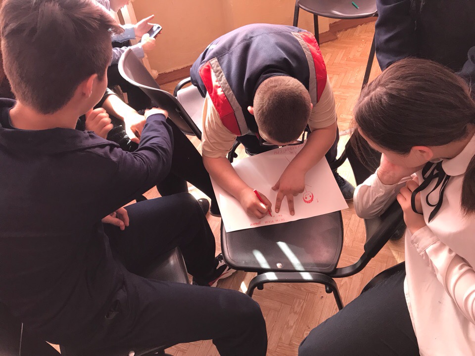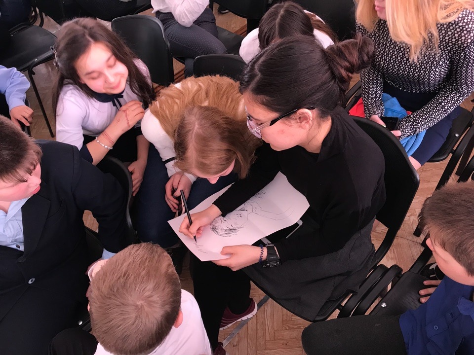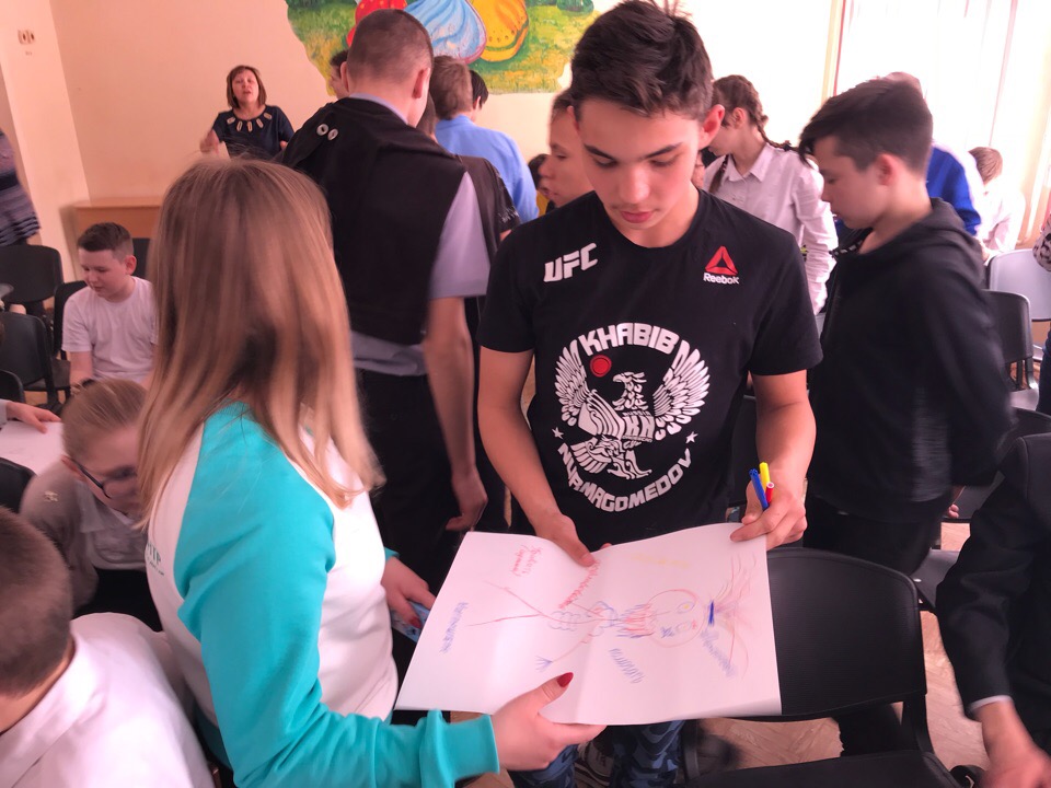 Во время рассказа наших координаторов у детей "горели" глаза. В завершении урока ребята нарисовали портрет идеального волонтера и высказали свое мнение по поводу того, какими качествами он должен обладать.