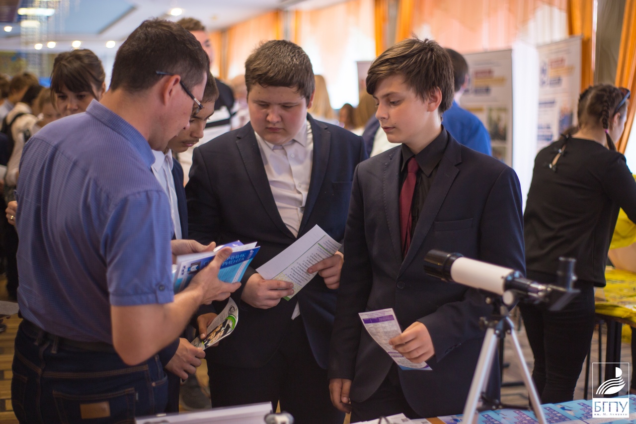 Представители учебных заведений презентовали себя в организованных блоках, где БГПУ им. М. Акмуллы представлял Мобильный центр инженерно-технического творчества. Данная лаборатория заинтересовала школьников возможностью конструирования электронных устройств, моделирования трехмерных фигур и деталей. Старший преподаватель кафедры прикладной физики и нанотехнологий Нагаев Фанур Амирович ознакомил учеников с историей развития робототехники, продемонстрировал  модели роботов.