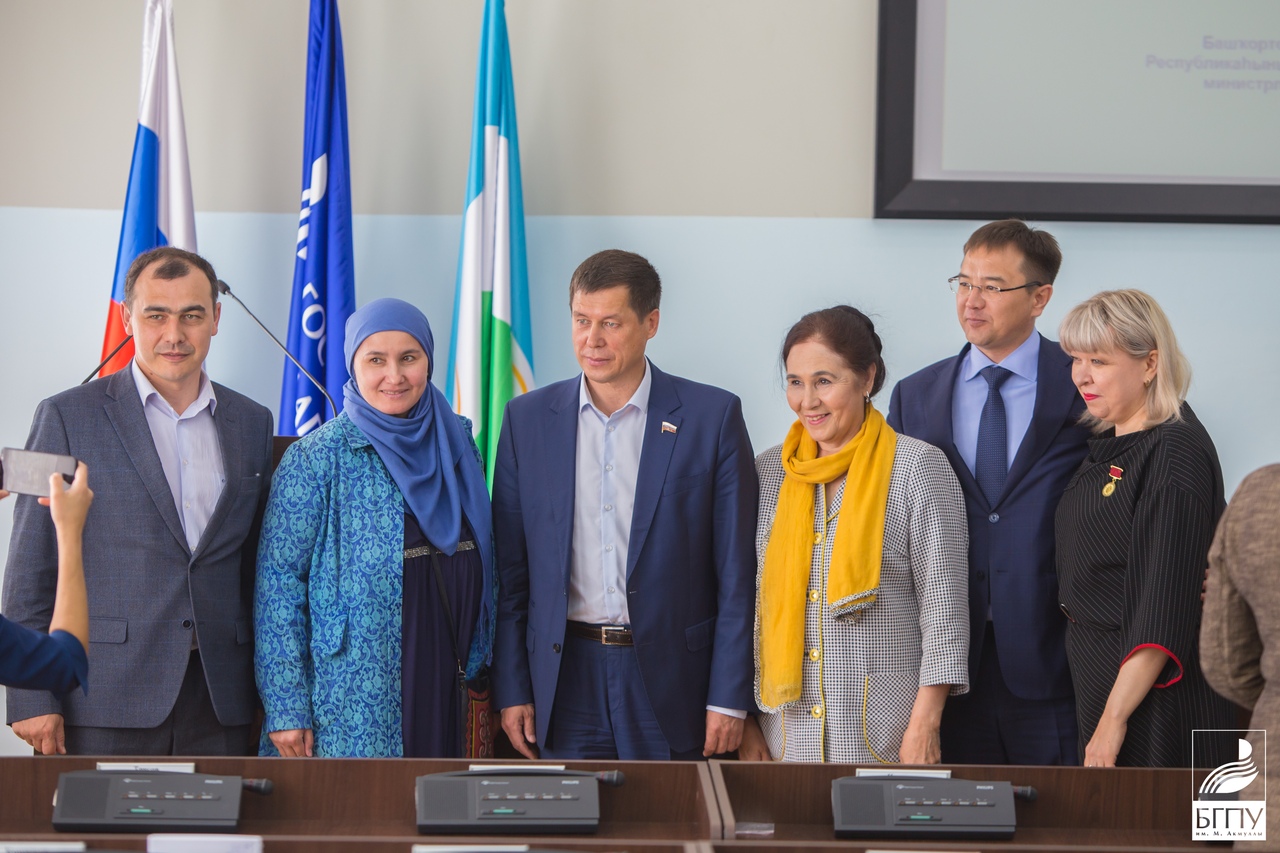 Депутат Госсобрания, председатель общества башкирских женщин Г.Г. Кульсарина наградила декана факультета башкирской филологии, д.ф.н., профессора Л.Х. Самситову медалью "Женщина - мать нации".