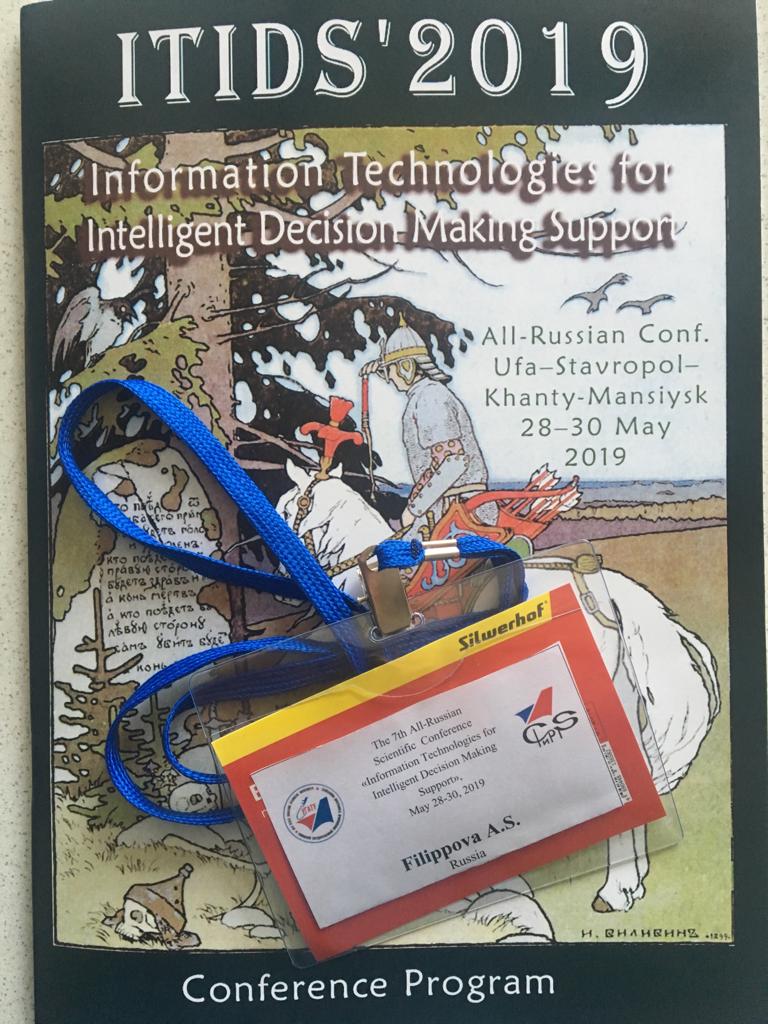 Преподаватели кафедры прикладной информатики приняли активное участие в работе и организации VII Всероссийской научной конференции с международным участием «Информационные технологии интеллектуальной поддержки принятия решений» (ITIDS’2019), которая проходила 28-30 мая 2019 г. одновременно на базе нескольких вузов: Уфимский государственный авиационный технический университет (г. Уфа), Северо-Кавказский федеральный университет (г. Ставрополь),  Югорского НИИ Информационных Технологий (г. Ханты-Мансийск).