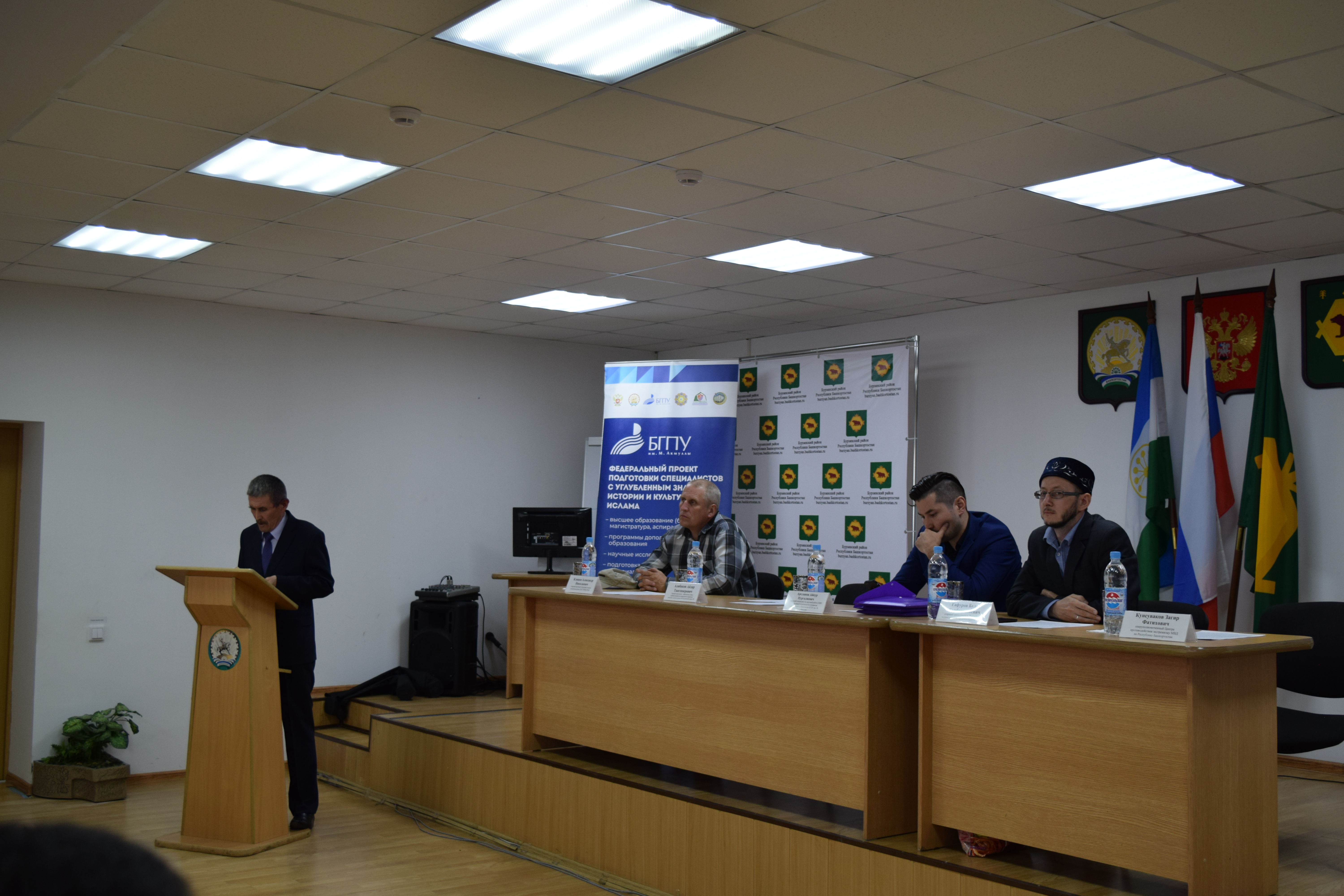 Айнур Арсланов рассказал о деятельности созданных по инициативе руководства государства центров духовной безопасности при высших учебных заведениях. Пригласил присутствующих посетить организуемые БГПУ им. М. Акмуллы тематические курсы профессиональной переподготовки и повышения квалификации, раздал методические материалы и пособия, изданные при содействии НИИ. Также модератор рассказал о методике работы и практической деятельности научного сообщества по профилактике экстремизма и терроризма.