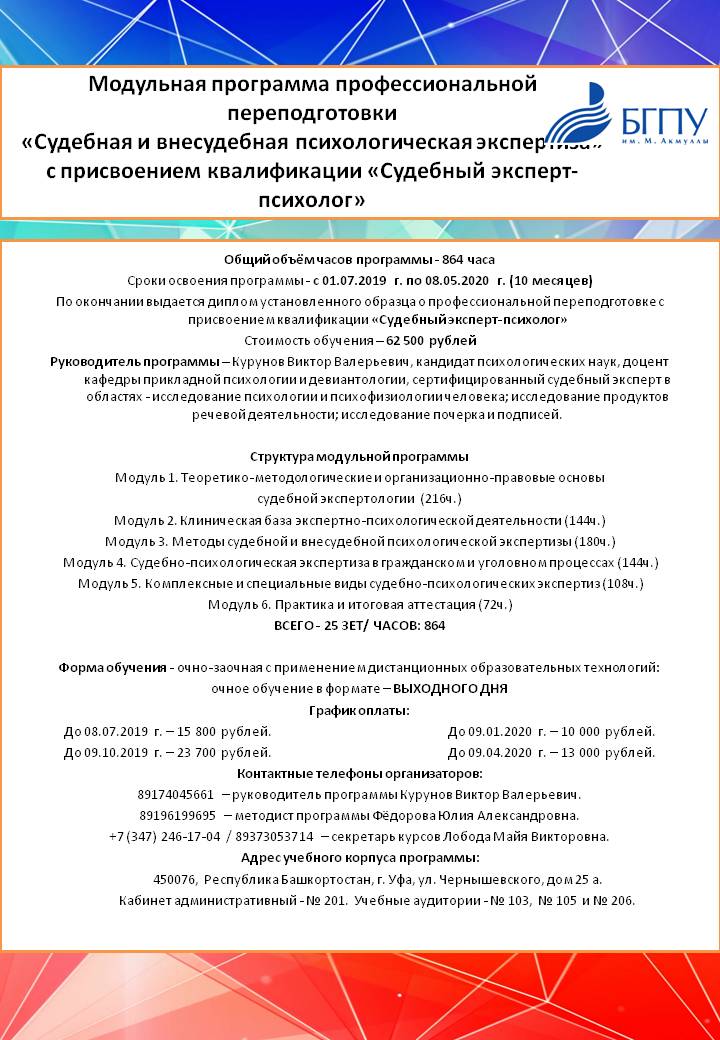 Программа профессиональной переподготовки "Судебная и внесудебная психологическая экспертиза"