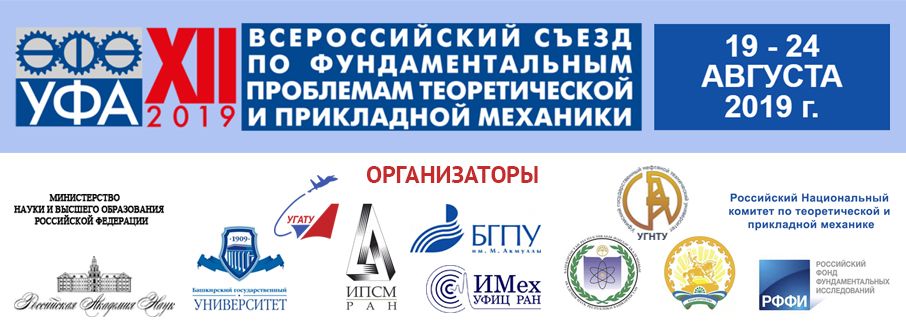 Российский национальный комитет по теоретической и прикладной механике совместно с Институтом проблем сверхпластичности металлов РАН, Башкирским государственным университетом, Уфимским государственным авиационным техническим университетом,  Уфимским государственным нефтяным техническим университетом, Башкирским государственным педагогическим университетом им. М. Акмуллы, Институтом механики им. Р.Р. Мавлютова УФИЦ РАН при поддержке Российской академии наук, Министерства науки и высшего образования Российской Федерации, Российского фонда фундаментальных исследований, Правительства Республики Башкортостан и Академии наук Республики Башкортостан проводят в г. Уфе 19-24 августа 2019 года XII Всероссийский съезд по фундаментальным проблемам теоретической и прикладной механики. В рамках съезда пройдут Четвертая Всероссийская школа молодых ученых-механиков и сессия Общего собрания Российского Национального комитета по теоретической и прикладной механике.