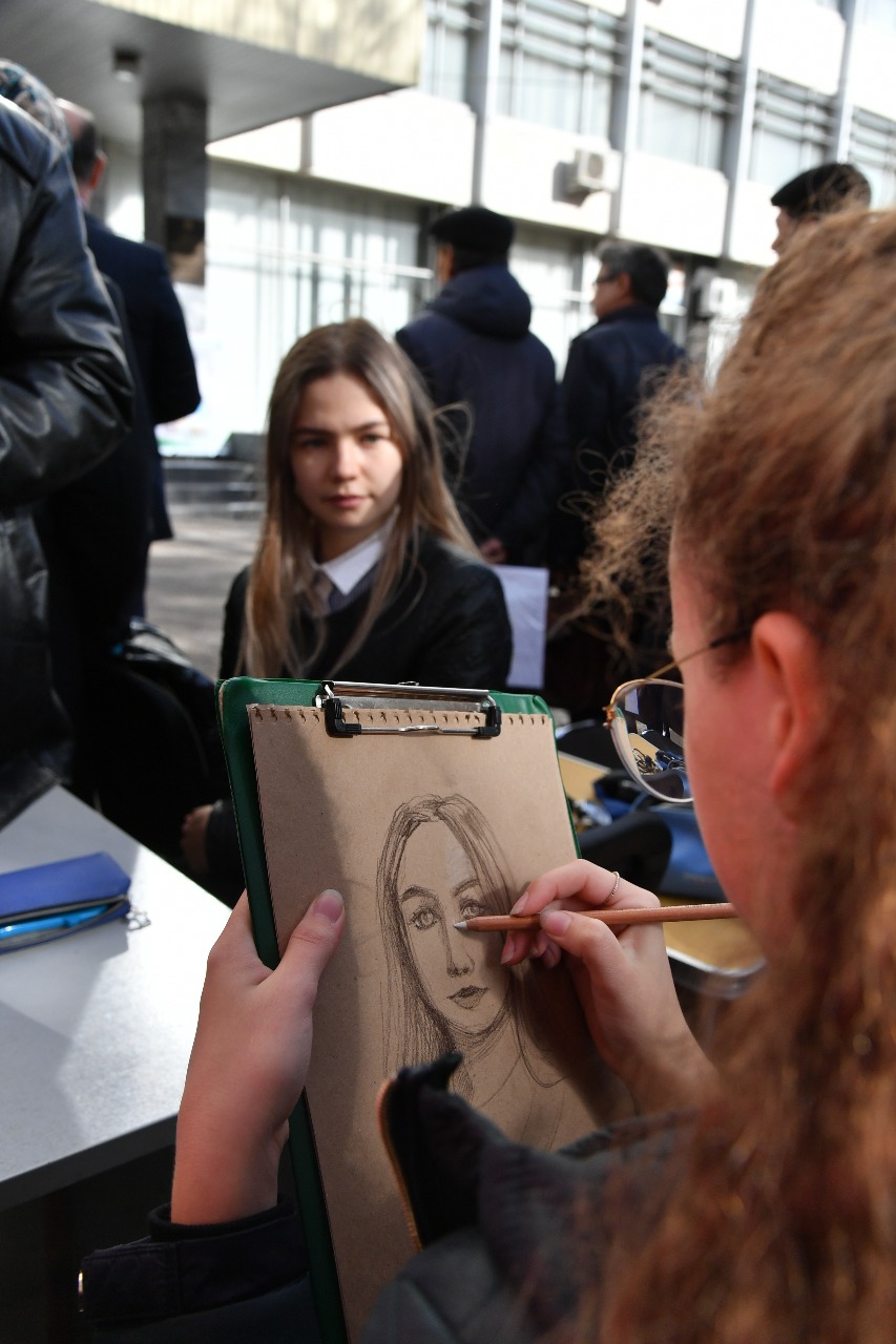 Студенты художественно-графического факультета 2 курса, направления Дизайн рисовали портреты и шаржи для подписчиков газеты Республика Башкортостан. За короткое время студентам удалось выполнить большое количество портретов, а количество желающих запечатлеть себя на бумаге не убавлялось.