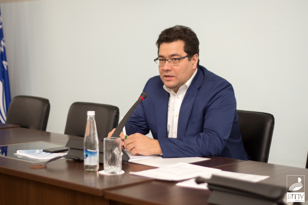 Заместитель начальника управления рекрутинга и карьерного развития Марат Загидуллин представил план организации профориентационной работы университета на 2019-2020 учебный год. Он отметил, что профориентационная работа – это кропотливая  ежедневная работа всех структур  вуза. От набора абитуриентов на входе зависят показатели эффективности учебного процесса, качество и количество работы преподавателей и даже штатное расписание профессорско-преподавательского состава. Основная часть плана проофриентационной работы должна быть исполнена до февраля 2020 года, т.е. до момента, когда абитуриенты определятся с выбором ЕГЭ.