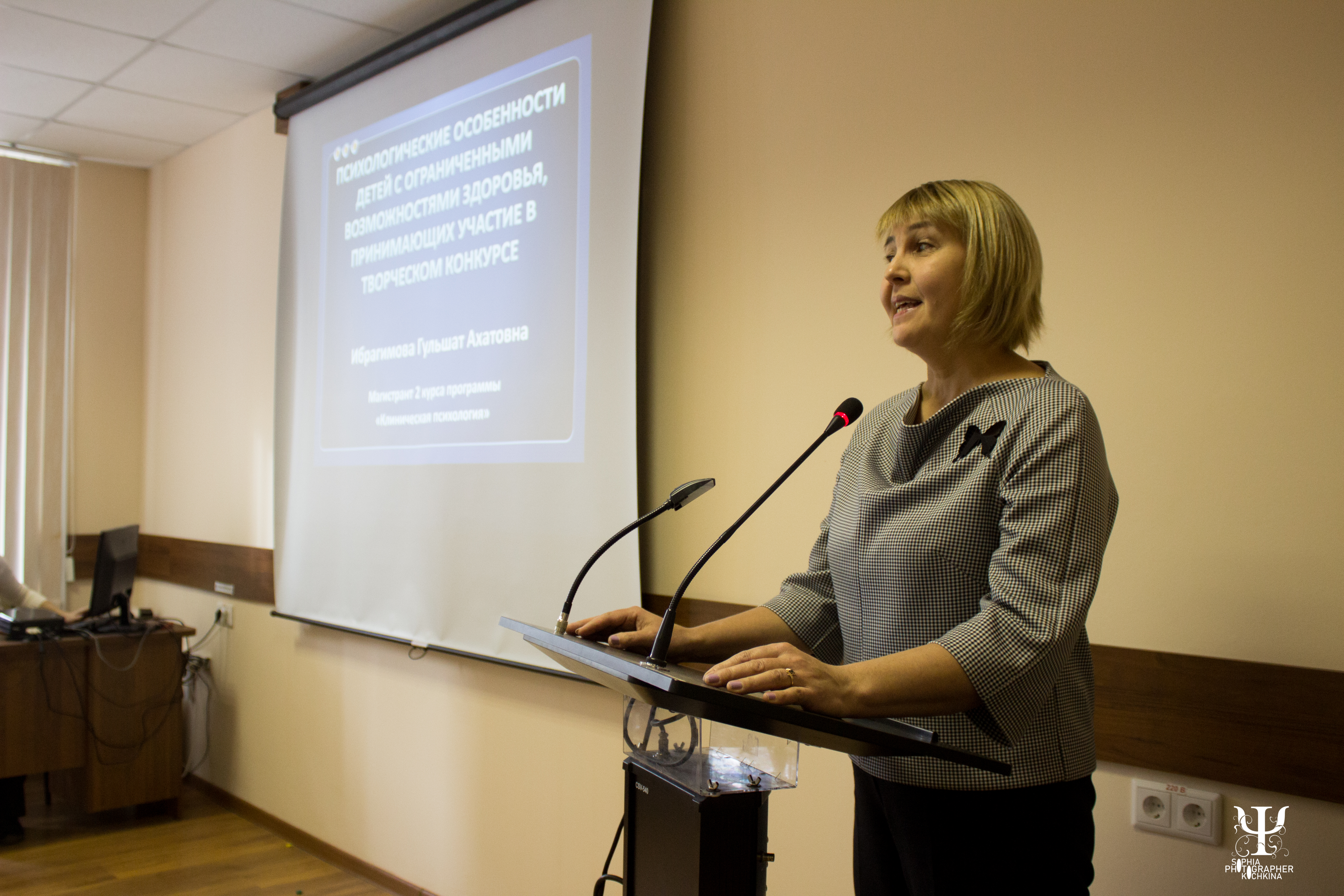 Особый сердечный отклик вызвал у участников семинара доклад руководителя Региональной общественной организации Совет матерей «Материнское сердце» РБ, магистранта 2 курса программы «Клиническая психология» Г.А. Ибрагимовой «Психологические особенности детей с ограниченными возможностями здоровья, принимающих участие в творческом конкурсе», сопровождавшийся музыкальными номерами юных артистов с нарушениями слуха, опорно-двигательного аппарата и интеллекта.