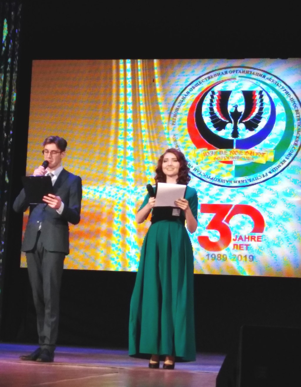 Студенты 5 курса ИФОМК БГПУ им. М. Акмуллы Приказчиков Максим и Васильева Елизавета приняли участие в качестве ведущих юбилейного концерта. Музыкальный коллектив ИФОМК «Лорелея» поздравил Союз немцев «Видергебурт» музыкальным номером на немецком языке.