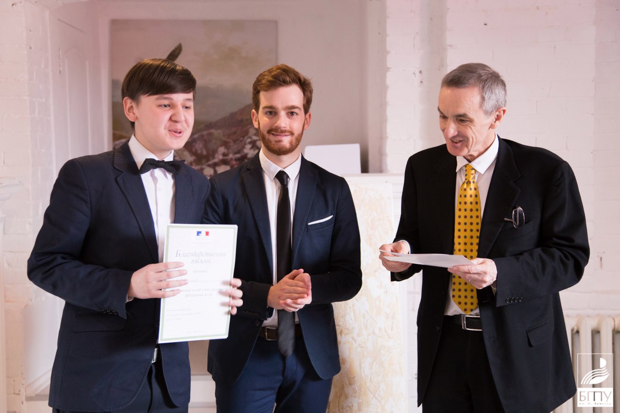 27 марта господин О. Гийом провел встречу со студентами БГПУ им. М. Акмуллы, а также в торжественной обстановке наградил победителей конкурса французской песни и французского диктанта. После слово было предоставлено координатору сети «Альянс Франсез» в России госпоже Мирей Шеваль, объявившей о конкурсе творческих работ, победители которого отправятся на учебную стажировку во Францию.