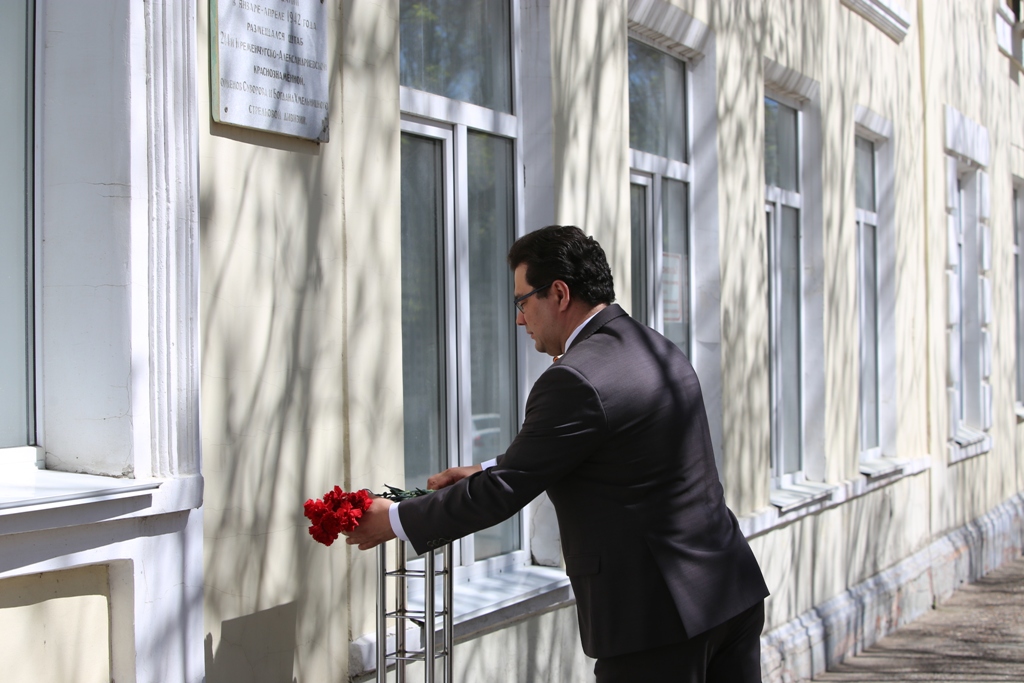 В честь Дня Победы ректор Акмуллинского университета Салават Сагитов возложил цветы к мемориальной доске и посетил музей, посвященный 214-й стрелковой дивизии.
