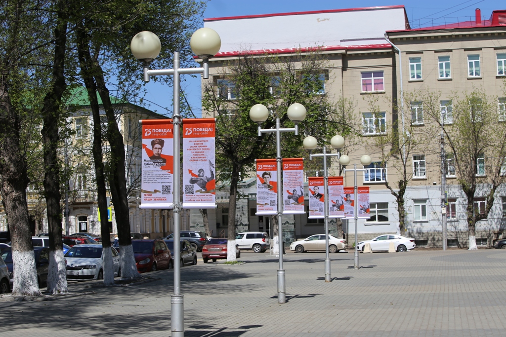 Память о героях Великой Отечественной войны бережно хранится в Башгоспедуниверситете. В этом году площадь перед главным корпусом вуза украсили полотна с информацией о вкладе региона в победу над фашизмом и героях Великой Отечественной войны - уроженцах Башкирии. На полотнах размещен QR-код, перейдя по которому можно ознакомиться с более подробной информацией.