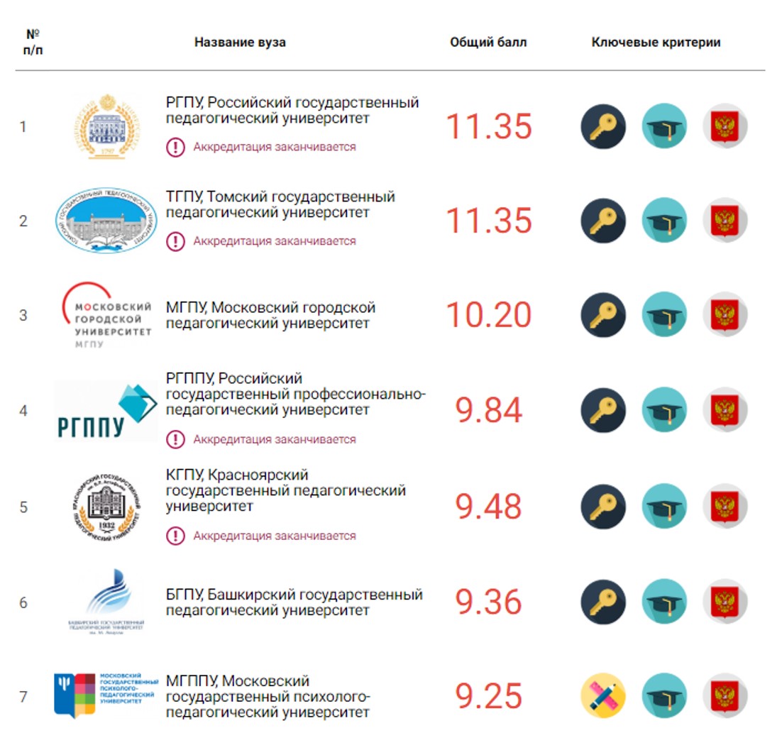 Башкирский государственный педагогический университет им.М.Акмуллы занял в нем 6 место среди педагогических университетов России, уступив коллегам из Санкт-Петербурга, Москвы, Томска, Екатеринбурга и Красноярска.