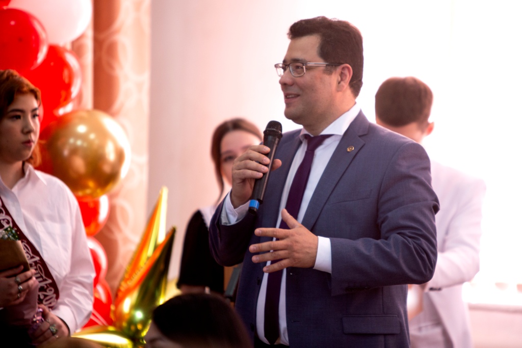 Обращаясь к виновникам торжества, Марат Васимов отметил, что их будущее зависит от них самих и посоветовал ребятам быть амбициозными, креативными, трудолюбивыми и ничего не бояться.
