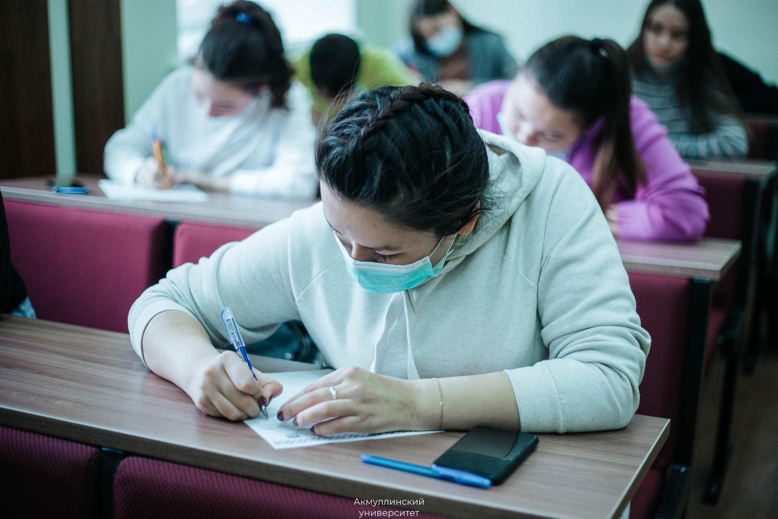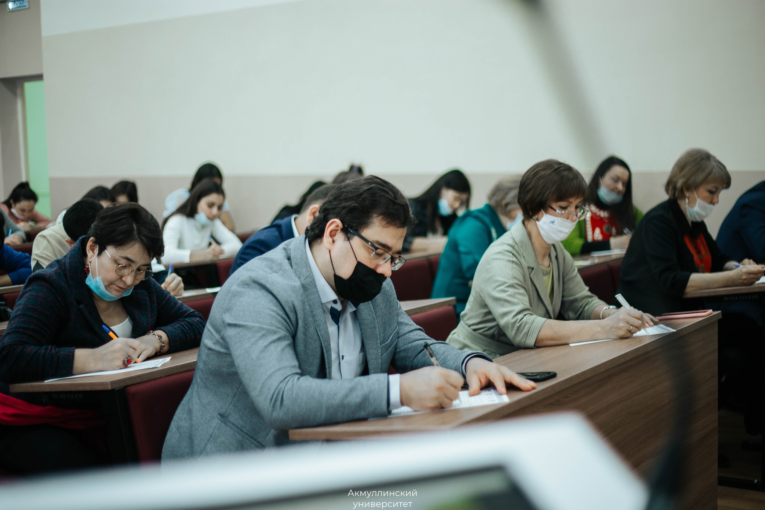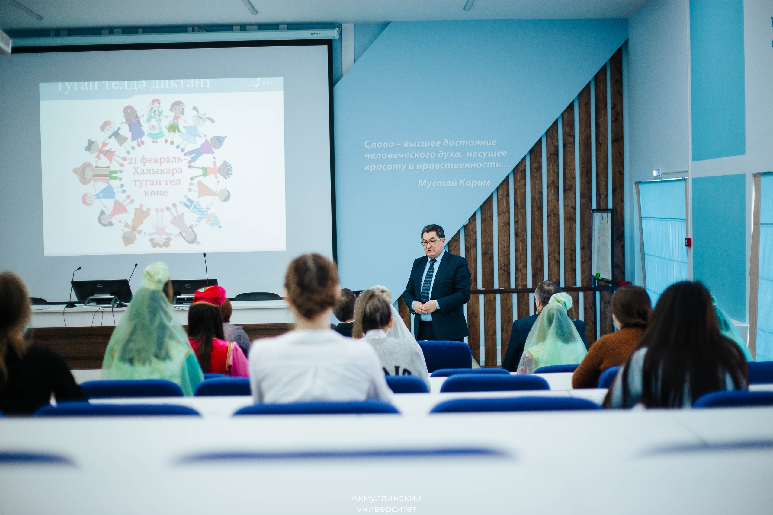 В аудитории имени Почетного профессора Акмуллинского университета, Народного поэта Башкортостана Мустая Карима прошел диктант на татарском языке. Вместе со студентами Института филологического образования и межкультурных коммуникаций его написали редактор газеты «Кызыл таң» Ф.К. Фатхтдинов и журналист газеты Ю.Тухватуллина,  директор татарского театра «Нур» Ф.Ф. Габидуллин и зав.отделом поэзии журнала «Тулпар» М.М. Вафин. Отрывок из романа Галимджана Ибрагимова «Глубокие корни» читала к.ф.н., доцент кафедры татарского языка Раушания Гареева.