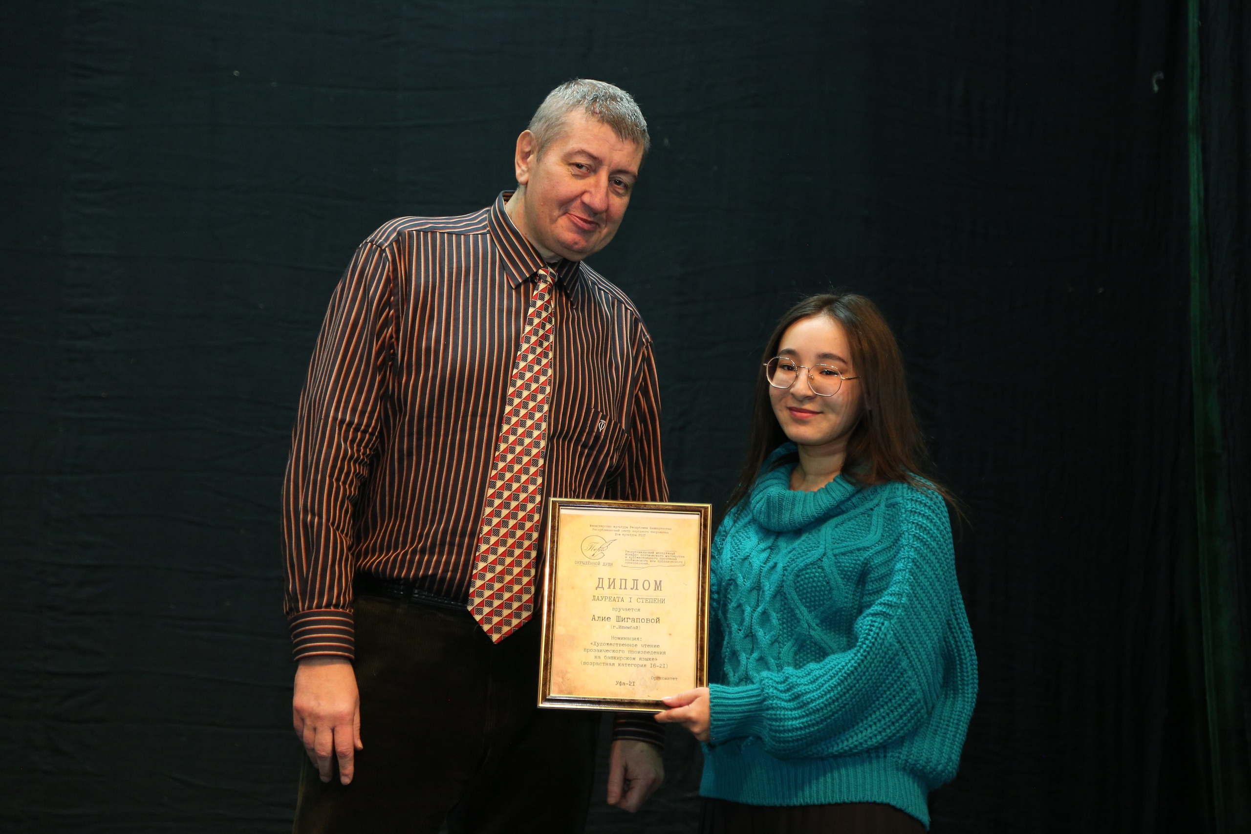 В конкурсе приняли участие студенты 4-го курса факультета башкирский филологии. Аделия Шафикова стала финалистом в номинации «Художественное чтение поэтического произведения на русском языке». Назгуль Калимуллина представила свои авторские произведения и так же была награждена дипломом финалиста в номинации «Художественное чтение авторского произведения на русском языке». Алия Шигапова представила на конкурсе два прозаических произведения, в результате чего стала лауреатом III степени в номинации «Художественное чтение прозаического произведения на русском языке» и лауреатом I степени в номинации «Художественное чтение прозаического произведения на башкирском языке».