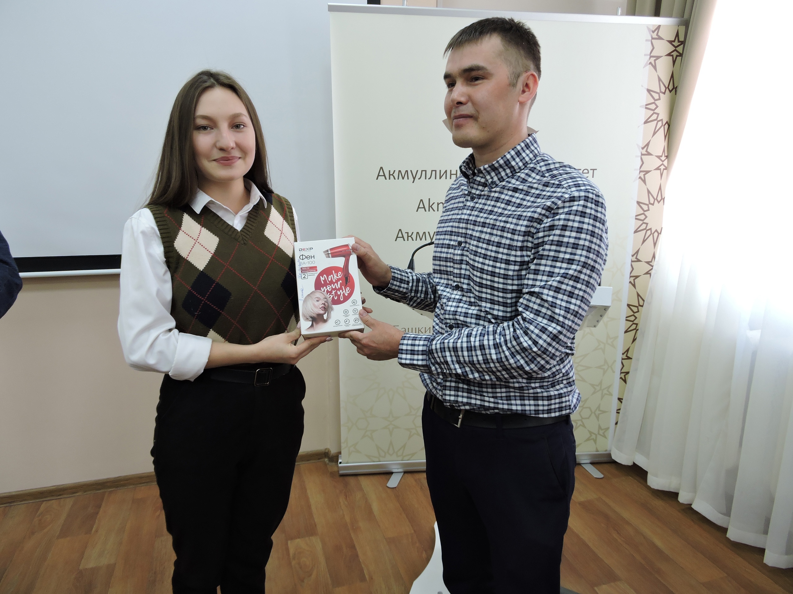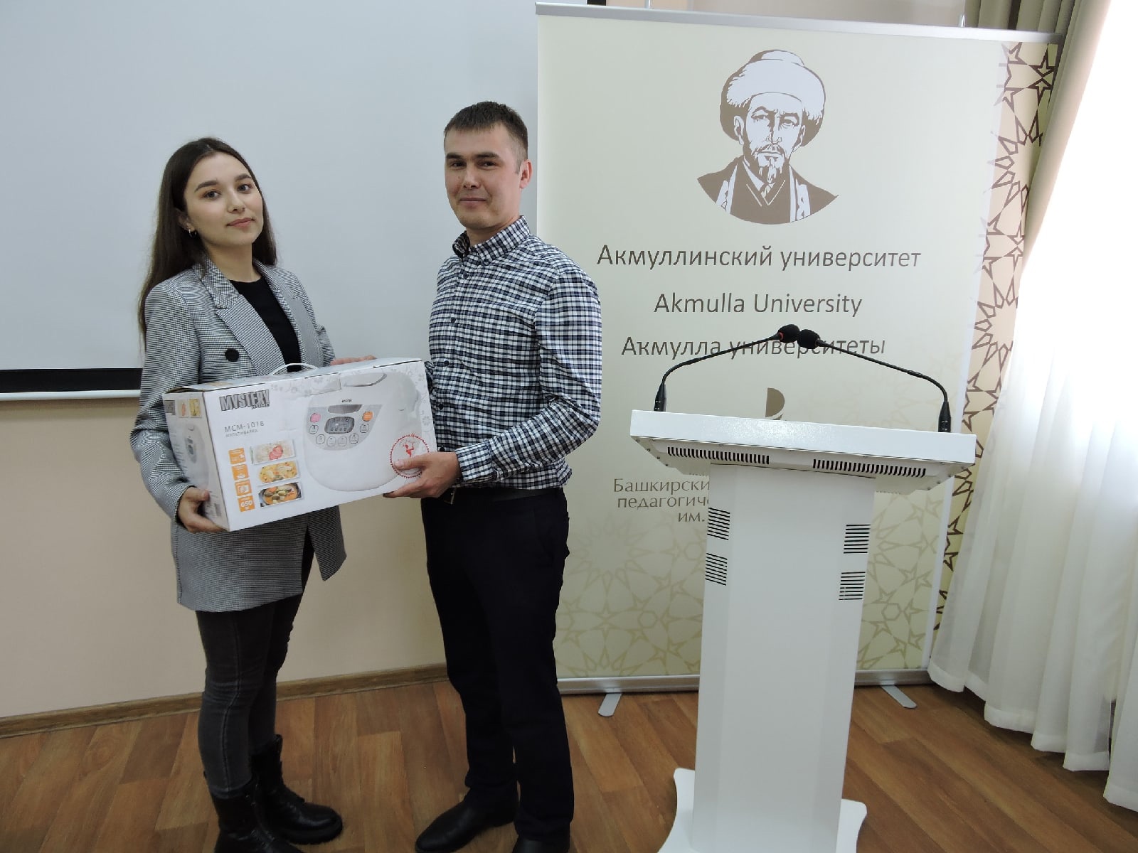 На факультете башкирской филологии прошла встреча с редактором  республиканского молодежного общественно-политического и литературно-художественного журнала  "Шоңҡар" А.Г.Баймухаметовым и  журналистами В.Исхаковым, Ф.Акиловым.  В своих выступлениях  гости рассказали о  роли журнала в деле воспитания подрастающего поколения, новых рубриках, поделились с планами  и  новыми идеями. Отрадно,  что они не только призывали подписаться на журнал, но и пригласили наших студентов со своими произведениями для публикации на страницах этого журнала.  Отметим, что студенты факультета башкирской филологии являются постоянными подписчиками этого издания  и с нетерпением ждут выхода нового номера. Отправив свои квитанции в редакцию журнала, наши студенты приняли участие  в акции "Яҙыл да бүләк от!" (Подпишись и выиграй) от журнала "Шоңҡар". Айгиз Баймухаметов вручил ценные подарки победителям: студент 1 курса факультета башкирской филологии Назарова Алина выиграла фен,  а семья Гирфановой Янгузель - мультиварку. От всей души  поздравляем победителей!
