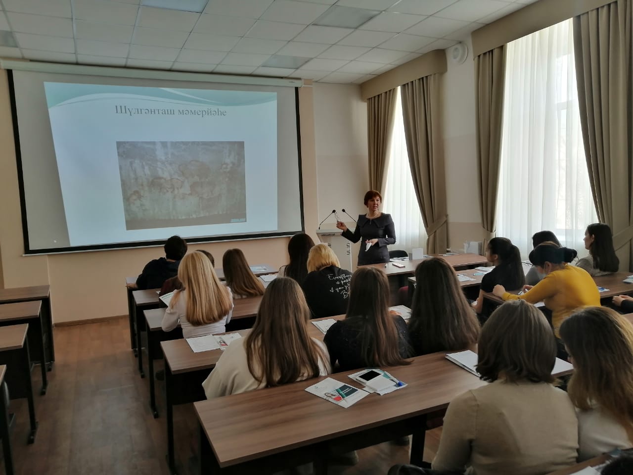 Состоялась встреча с деканом, преподавателями, студенческим активом факультета башкирской филологии. Д.ф.н., проф. Хусаинова Л.М. прочитала лекцию на тему «Предыстория башкирского письма».