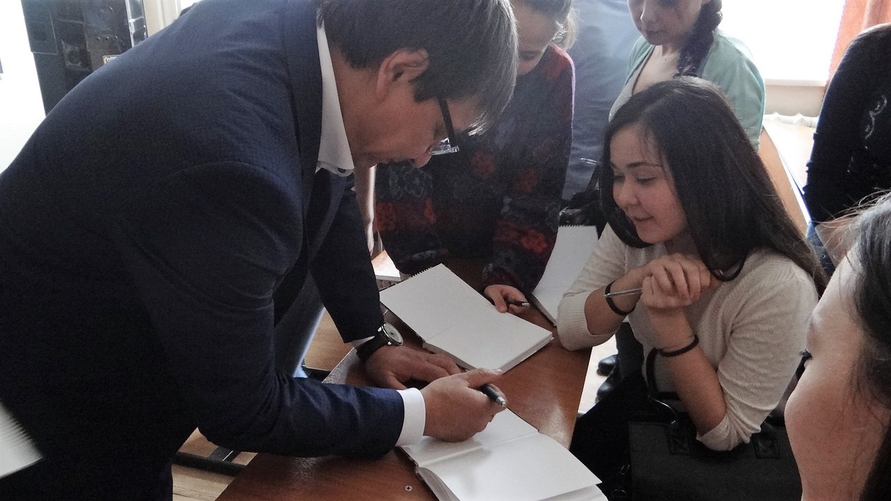 Расуль Хасанович Сагитов поделился воспоминаниями из детства о «Культе книги», немного рассказал о содержании новой книги, о журналистской деятельности и пути становления журналистом, о юридическом образовании. Также он отметил необходимость знания родного языка и нескольких иностранных, ведь настоящий журналист должен иметь широкий кругозор. Студенты были заинтересованы встречей и имели возможность задать волнующие их вопросы.