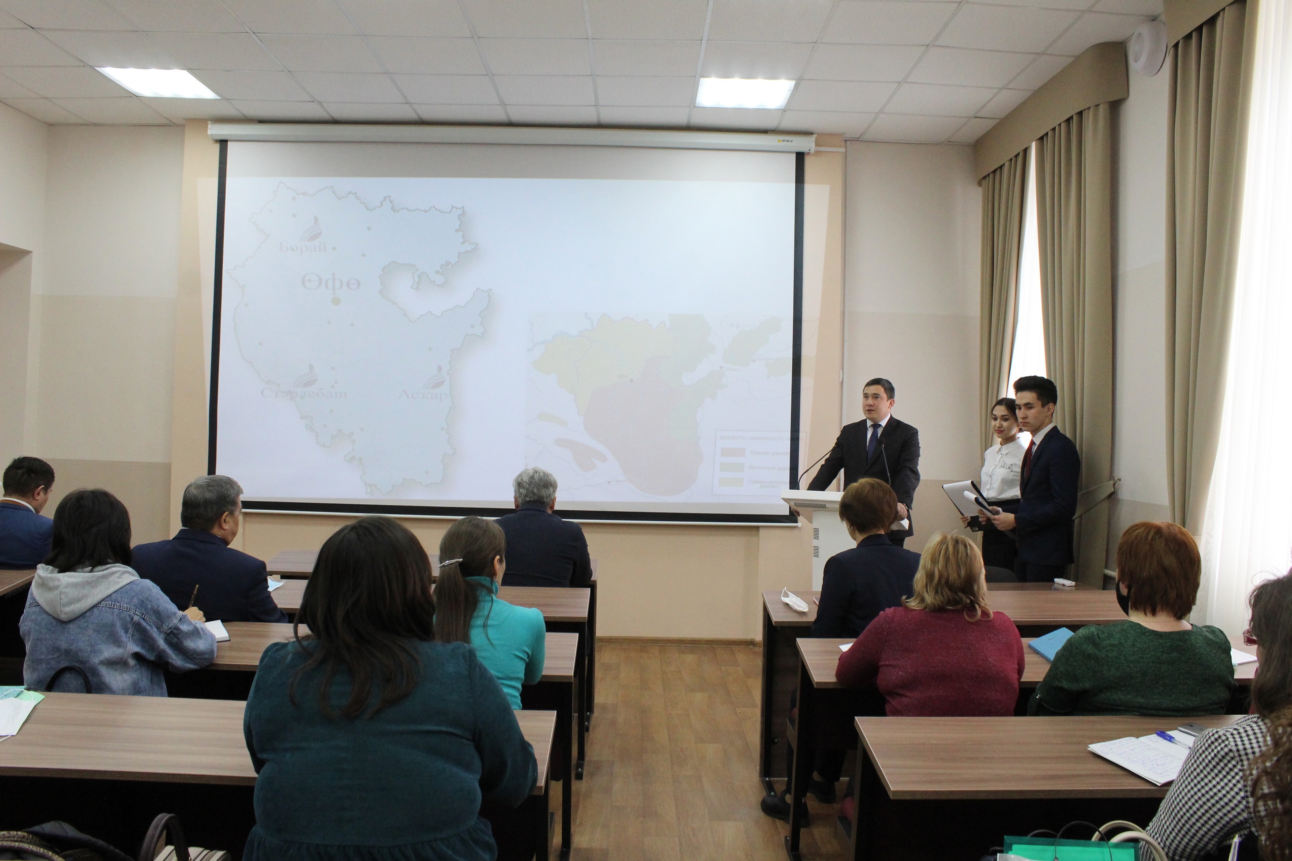 В рамках проекта «Педагогическая мастерская воспитателя ДОО «Остаз», реализуемого на средства гранта Главы Республики Башкортостан при поддержке Фонда содействия гражданскому обществу Республики Башкортостан с 26.04.21 г по 30.04. началась сессия по программе профессиональной переподготовки «Педагог дошкольного образования со знанием башкирского языка». 35 воспитателей из Абзелиловского, Бураевского, Стерлибашевского районов (данные районы выбраны с целью охвата всех трех диалектов башкирского языка: восточного (на территории Абзелиловского района проживают представители кизильского говора), южного (Стерлибашевский район расположен между демским и ик-сакмарским говорами), северо-западного диалектов (на территории Бураевского района проживают представители таныпского говора) до конца недели будут повышать уровень своей профессиональной компетенции на факультете башкирской филологии и в институте педагогики. Воспитатели будут заниматься во вновь открытом кабинете дошкольного образования. На средства гранта и софинансирования вуза кабинет оснащен интерактивной панелью. Для распечатки и оформления раскрасок, рабочих тетрадей по развитию речи, дидактических материалов приобретен брошюратор, ламинатор, лазерный принтер, веб-камера и т.д. В кабинете сделан хороший ремонт. Будущих студентов ждёт современная, светлая аудитория. Добро пожаловать, абитуриент - 2021!