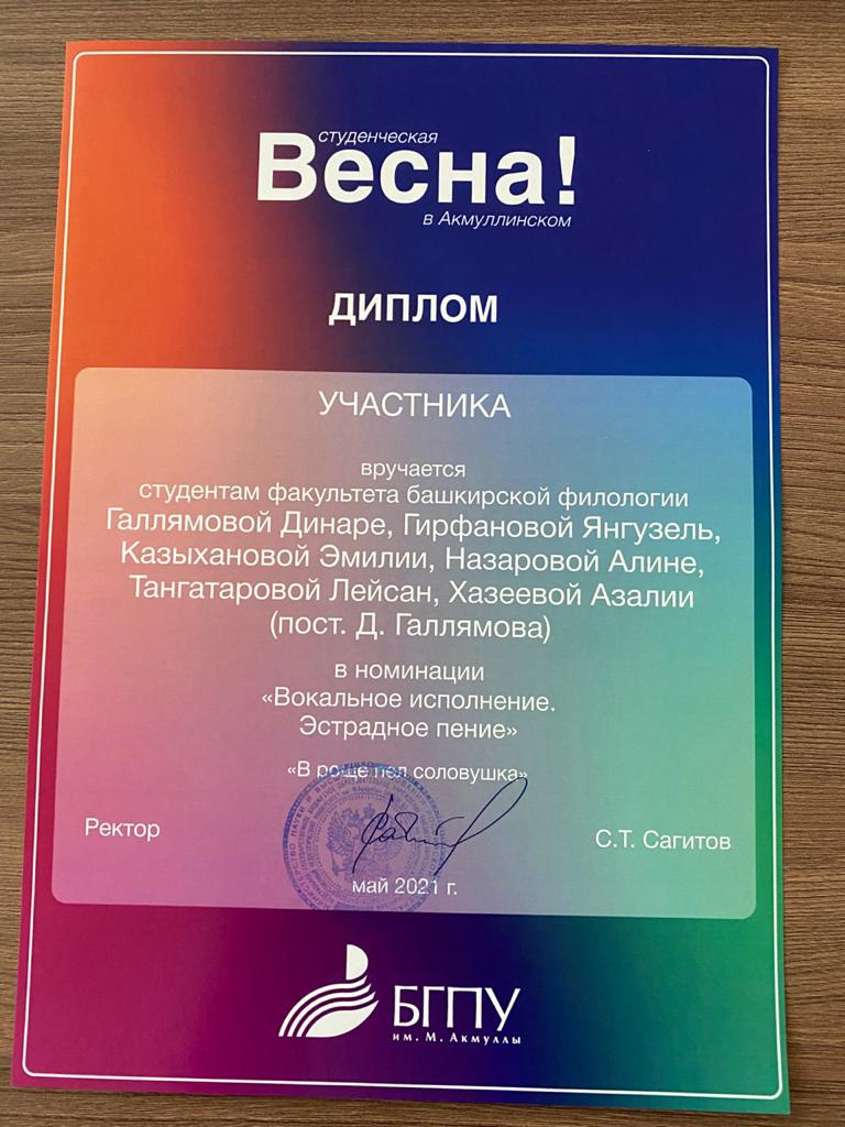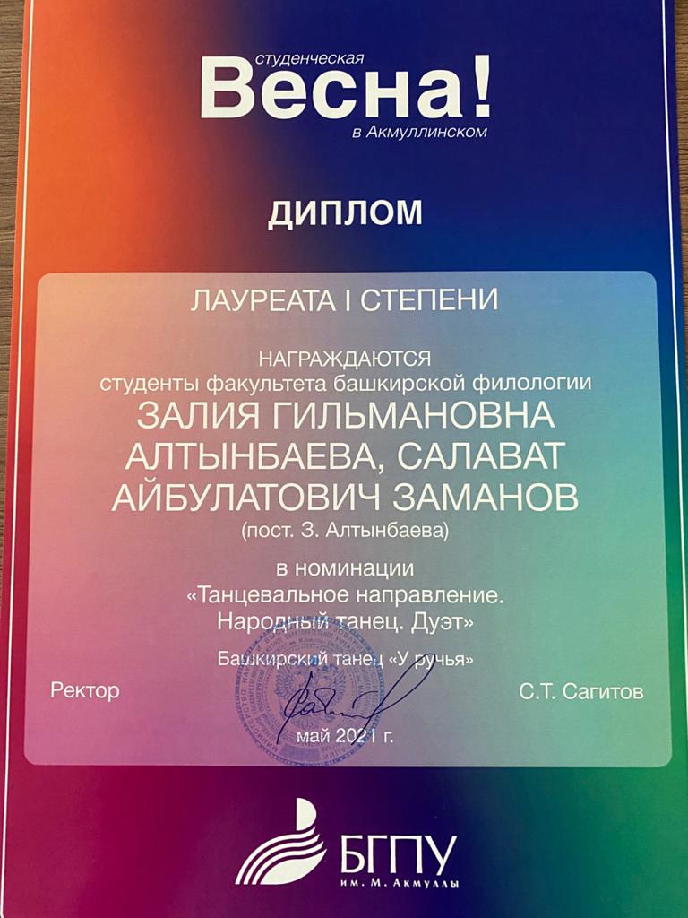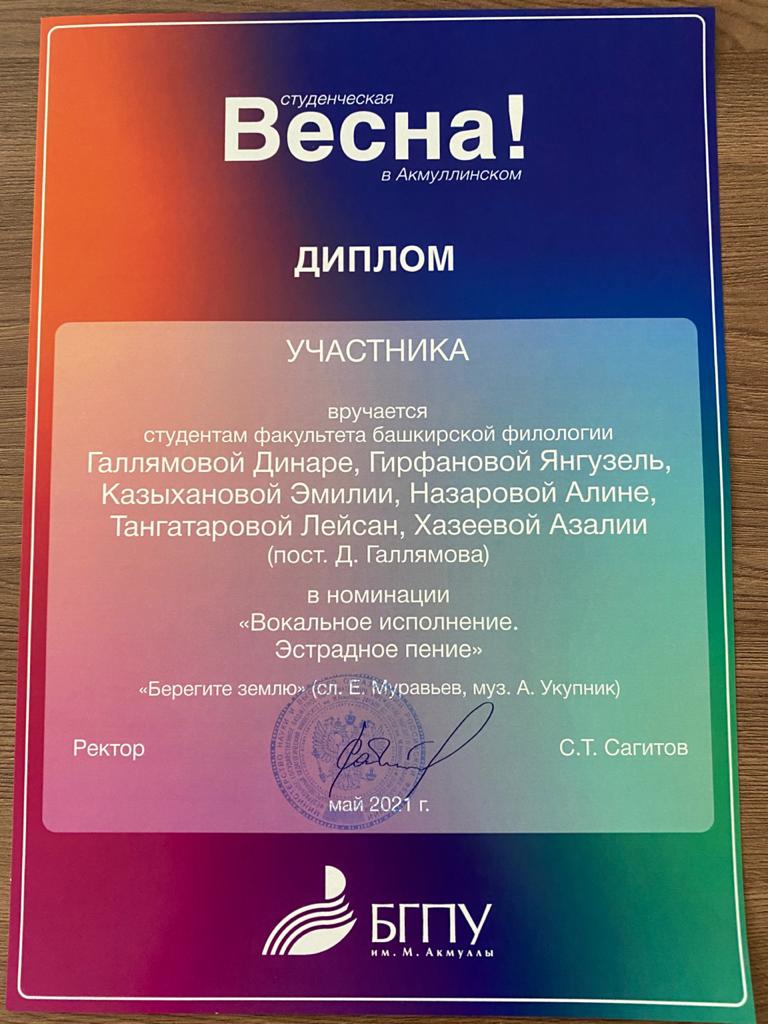 Итак, лауреатами конкурса “Студенческая весна - 2021” БГПУ им. М. Акмуллы в номинациях: