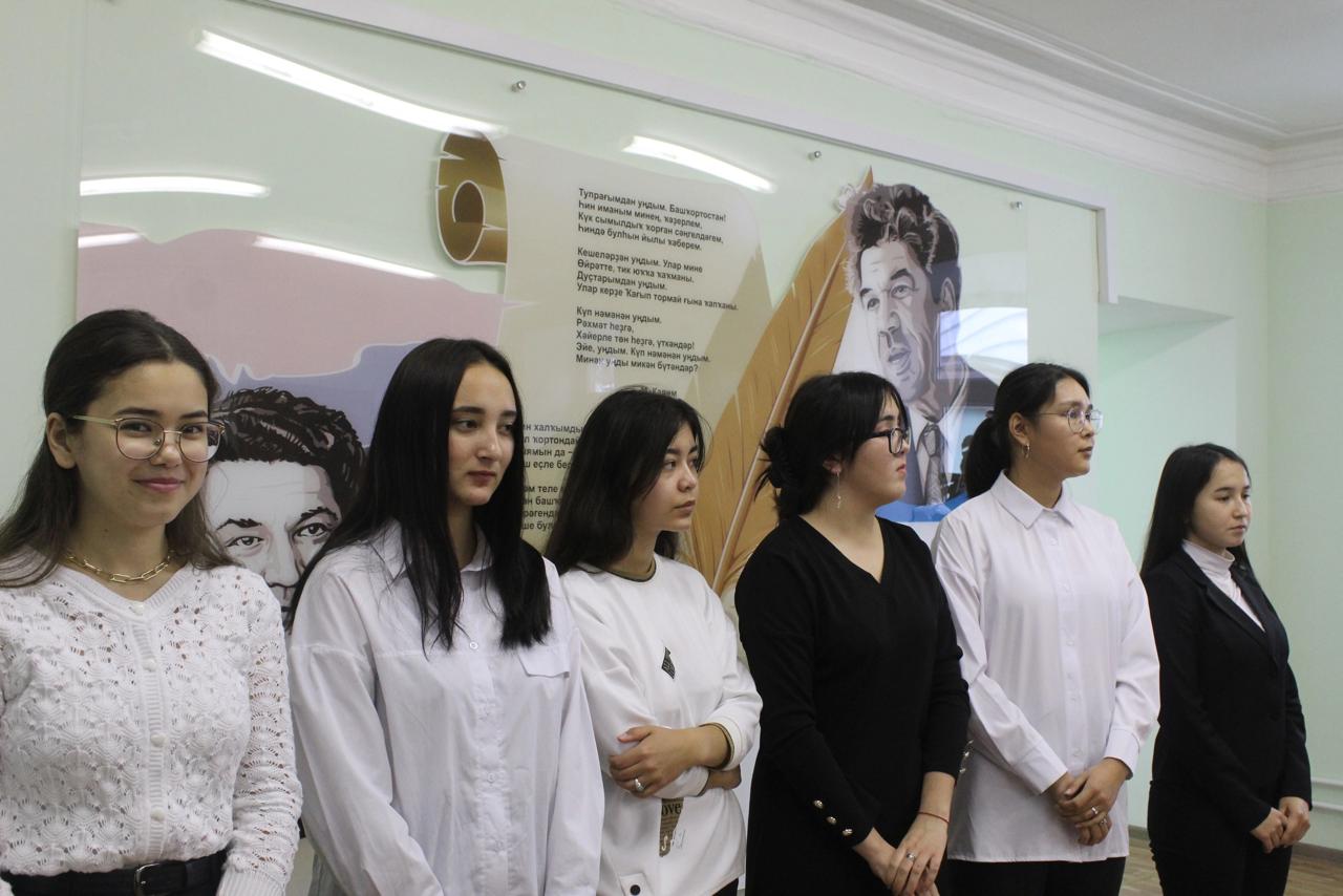 Студенты факультета башкирской филологии прочли строки известных стихотворений поэта. А вечером первокурсники ФБФ под руководством заместителя декана, доцента кафедры башкирского языка и литературы Раушании Султакаевой посетили спектакль «Мустай Карим. Близкий горизонт» Башкирского государственного театра кукол. Спектакль состоялся в Уфимском государственном татарском театре «Нур», на нем присутствовала директор Фонда имени Мустая Карима, дочь Мустафы Сафича Альфия Каримова и другие почётные гости, среди которых было много известных деятелей культуры Российской Федерации и Республики Башкортостан.