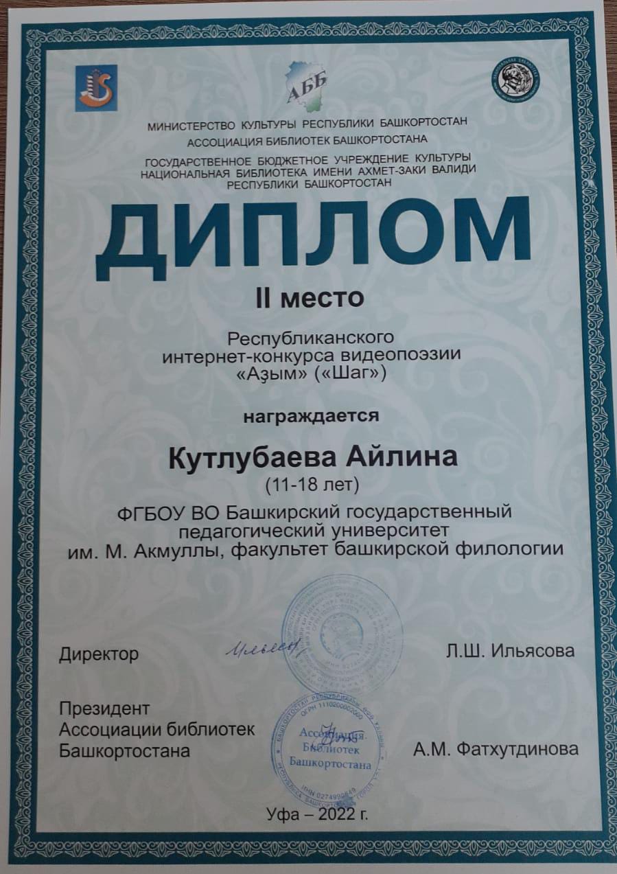 Студенты факультета башкирской филологии БГПУ им. М. Акмуллы стали победителями Республиканского конкурса видеопоэзии «Азым» («Шаг»), посвященного 90-летию со дня рождения народного поэта Рами Гарипова .