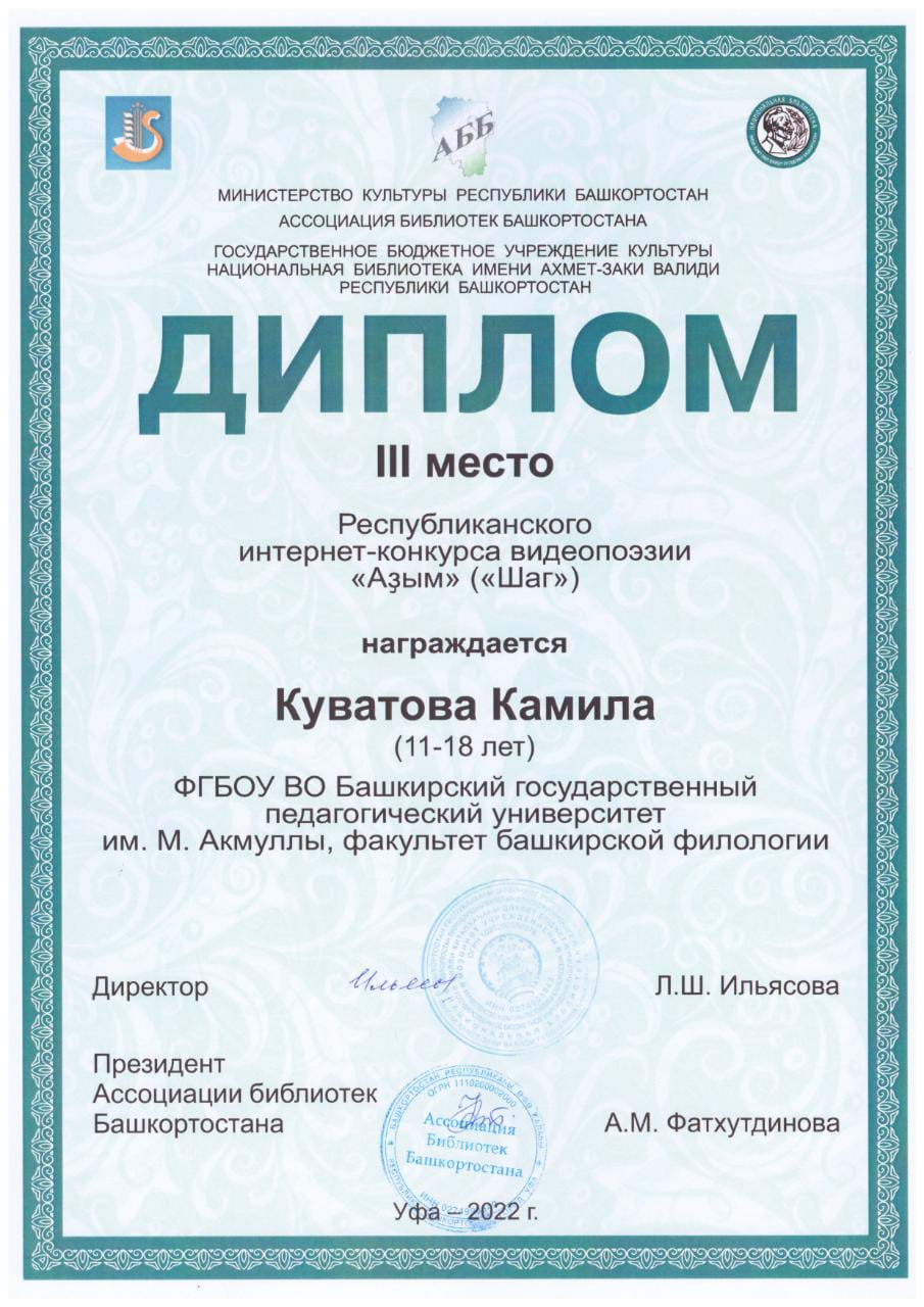 17 ноября в Национальной библиотеке им. Ахмет-Заки Валиди  Были подведены итоги конкурса и награждены победители. Среди них были и студенты 1 курса факультета башкирской филологии БГПУ им. М. Акмуллы: