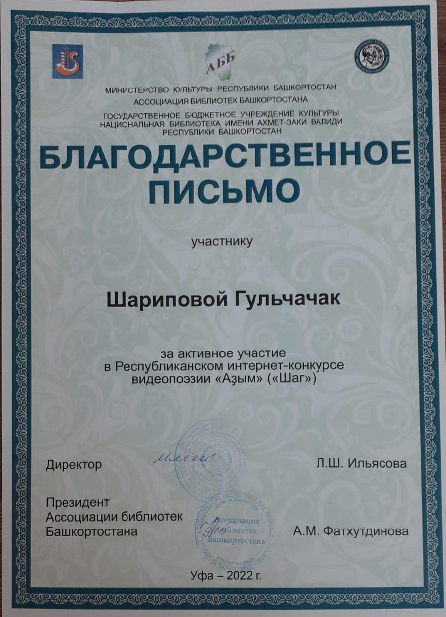 - Бирганова Гульназ и Шарипова Гульчачак награждены дипломами за активное участие.