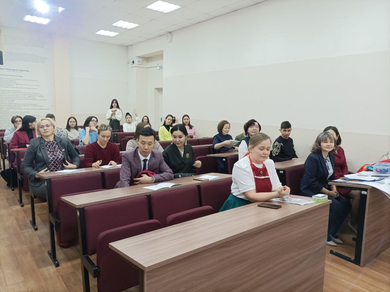 Старший преподаватель кафедры башкирского языка и литературы Г.Ш. Давлеткулова представила разработанный преподавателями факультета башкирской филологии УМК для детских садов «Мой мир», который состоит из учебно-методических и дидактических материалов, пособий для детских садов, необходимые для организации и проведения воспитательной деятельности на башкирском языке. В кабинете дошкольного образования была организована  тематическая выставка.