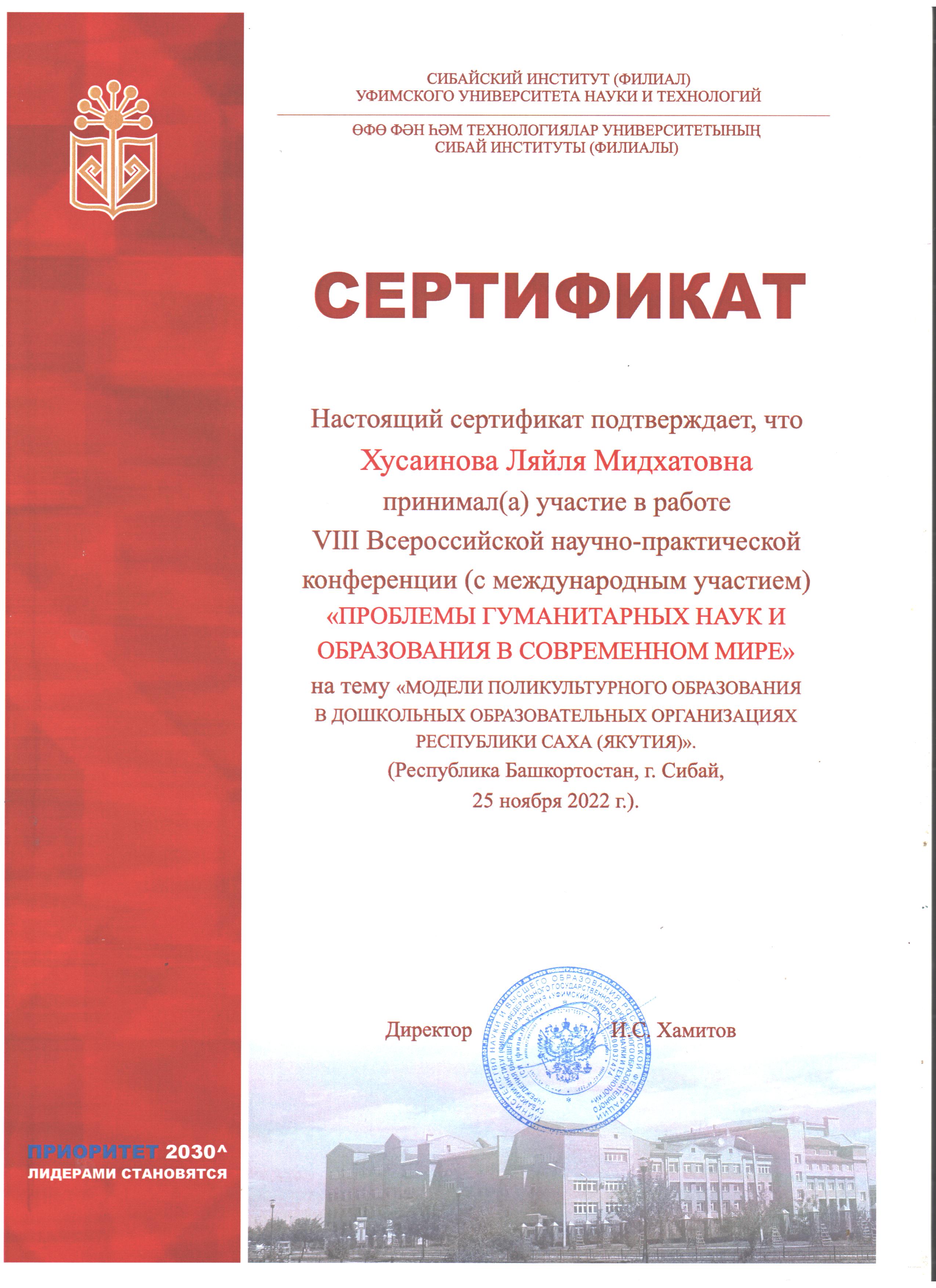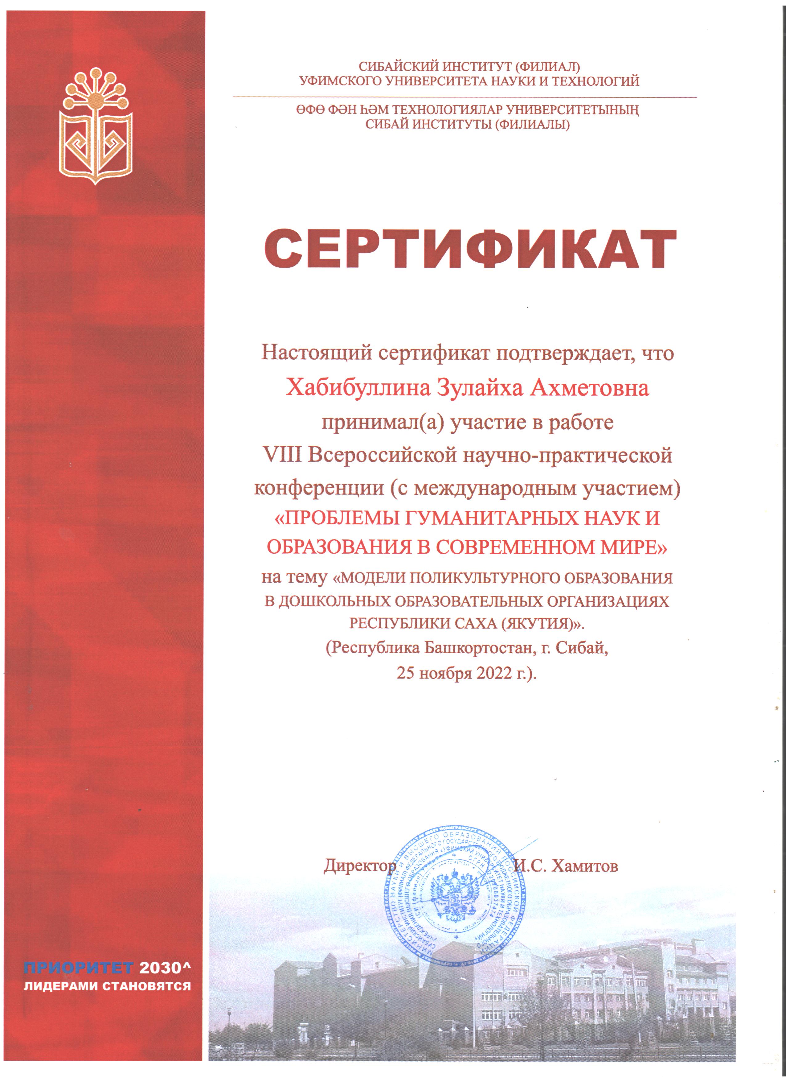 Декан факультета башкирской филологии Л.М. Хусаинова и доцент кафедры башкирского языка и литературы ФБФ З.А. Хабибуллина выступили с докладом "ПОЛИКУЛЬТУРНОГООБРАЗОВАНИЯВДОШКОЛЬНЫХ ОБРАЗОВАТЕЛЬНЫХ ОРГАНИЗАЦИЯХ РЕСПУБЛИКИ САХА (ЯКУТИЯ)" на пленарном заседании VIII Всероссийской научно-практической конференции (с международным участием) «Проблемы гуманитарных наук и образования в современном мире». Цель конференции – выявление и систематизация актуальных проблем и тенденций в области гуманитарных наук и системы образования, содействие включению молодых ученых в научное сообщество, создание условий для обмена учеными результатами исследований. В своем докладе авторы представили промежуточные результаты членов рабочей группы Акмуллинского университета на примере дошкольных образовательных организаций Республики Саха (Якутия) по выявлению, обобщению и трансляции передового опыта полилингвального образования в ДОО исследуемого региона, полученные в ходе реализации проект «Сравнительный анализ практик внедрения полилингвальной модели поликультурного образования (на примере Республик Башкортостан, Татарстан, Чувашия, Северная Осетия-Алания, Чечня, Кабардино-Балкария, Саха (Якутия)». Проект призван изучить практику внедрения полилингвальной модели поликультурного образования на территории Российской Федерации, их сравнительный анализ и разработка методических рекомендаций по организации поликультурного образования. Рассматриваемая проблема вызвала интерес у участников конференции, были заданы вопросы и пожелания. Организаторы научного форума выразили благодарность спикерам за выступление с актуальной темой на научно-практической конференции.