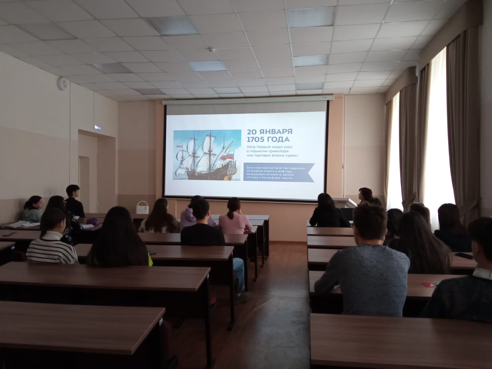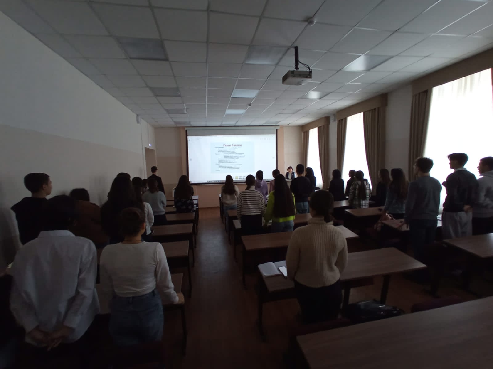 В конце занятия куратор первого курса З.А. Хабибуллина провела викторину, в которой студенты приняли активное участие. Увлекательный и познавательный кураторский час закончился исполнением Государственного гимна Российской Федерации.