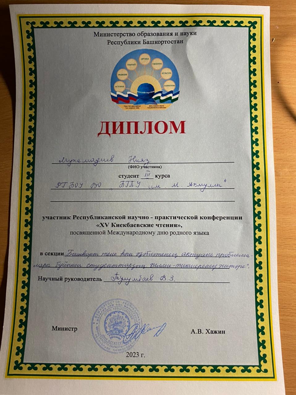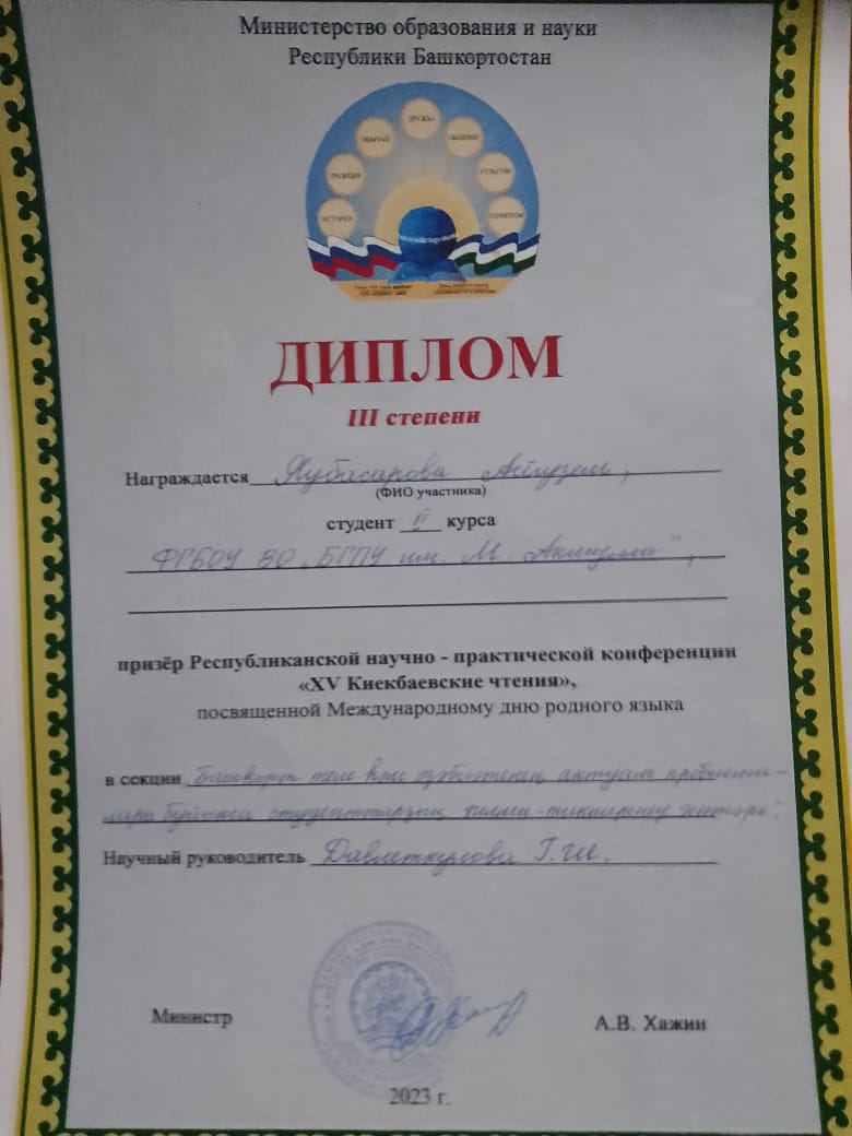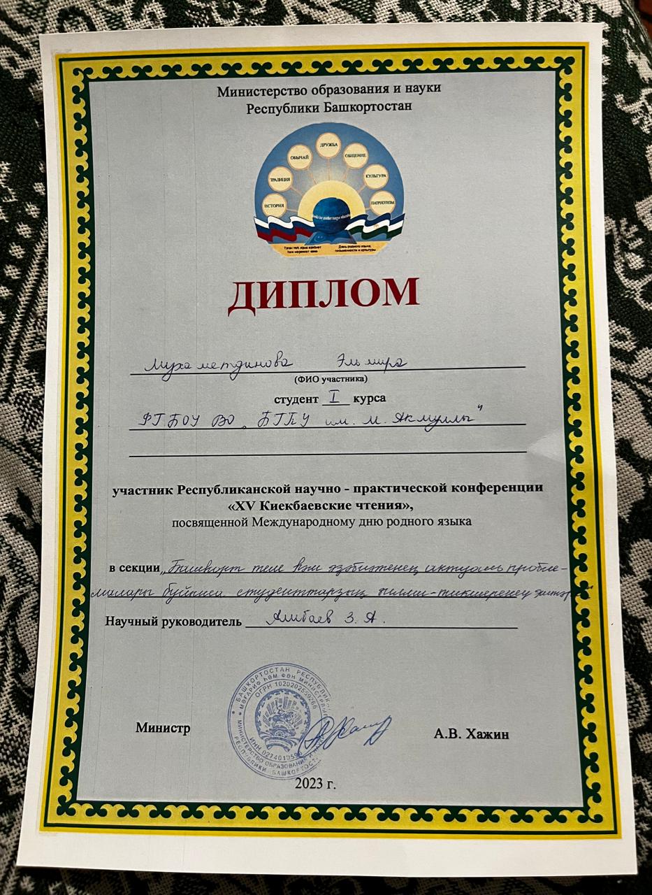 - Мухамадиев Нияз, студент 3 курса. Тема выступления: " Бөгөнгө башҡорт радиореклама теле" (научный руководитель Тулумбаев В.З.);